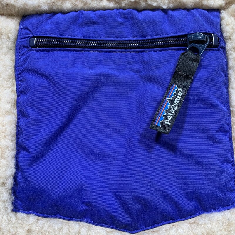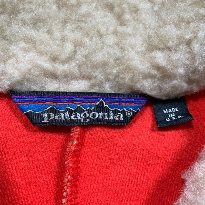 80年代のパタゴニア23011レトロパイルカーディガンです。1988年から1990年の3年間製造されたレトロシリーズの初代88年モデルです。三角吊りタグ、レジスターマーク、チンフラップ無し、コーティングジッパー、横開き胸ポケット。ハンドウォーマーポケット下部が裾まで繋がったデザインもオリジナルならでは。現行モデルとは違い羊のようにモコモコと毛足の長いパイルが特徴的です。多少毛玉は見られ、袖口のパイピングに擦れによる毛羽立ちがございますが、全体的には汚れも少なくパイル抜け等も殆ど無くグッドコンディションです。レトロパイルの代名詞と言えるナチュラルカラーはお探しの方も多いと思います。MADE IN USAのMサイズです。パタゴニアを代表する名作レトロパイルカーディガンの初代モデルは、今後さらに見つかりづらくなる事間違いなしです。サイズが合う方は是非この機会をお見逃しなく!