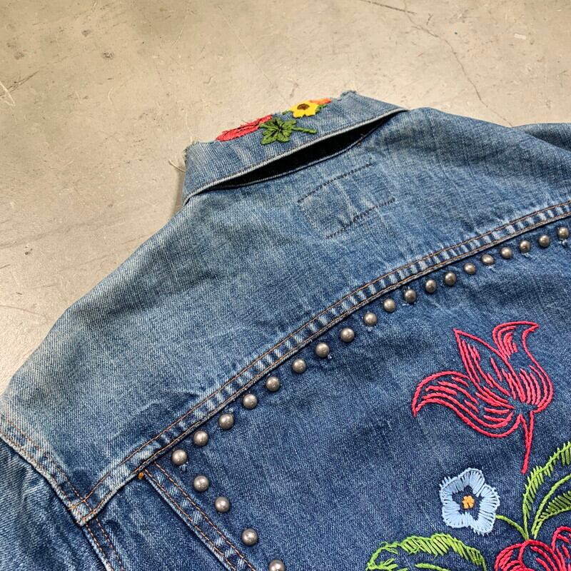 70's Levi's リーバイス 70505-0217 デニムジャケット 4th スモールe 濃紺 トラッカージャケット 刺繍 スタッズカスタム ヒッピー 刻印524 size42位 USA製希少 ヴィンテージ BA-1617 RM2036H