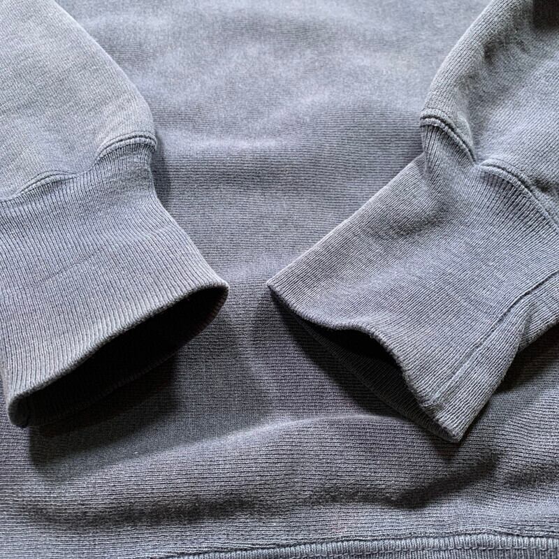 90年代頃のChampionリバースウィーブスウェットシャツです。定番の目付きモデル。1934年に誕生したリバースウィーブは現在もそのデザインはほとんど変わることなく現在でも非常に人気の高いアイテムとなっています。90年代の刺繍タグが付きUSA製です。多少の使用感が有り、右袖リブの小さなピンホール以外はダメージや汚れもほとんど無く状態良好。サイズは着やすいLARGE。シンプルなデザインですが、コーディネートを選ばず使える万能スウェットです。年々価格高騰しており、状態の良い物は入手しづらくなっています。お探しだった方は是非この機会にいかがでしょうか。