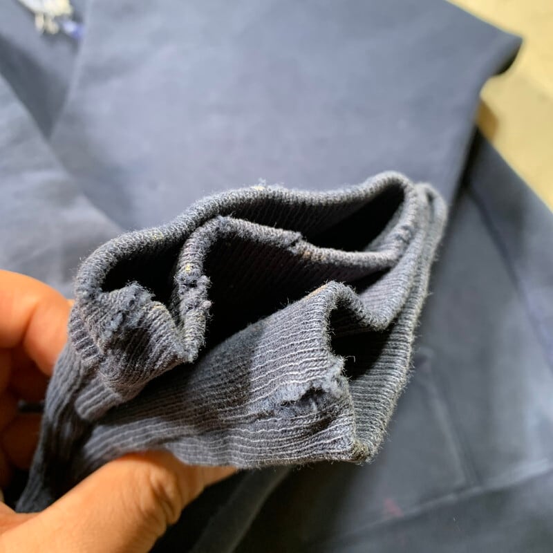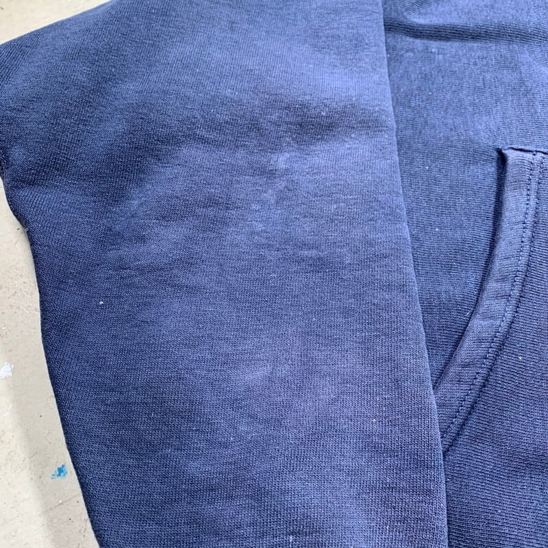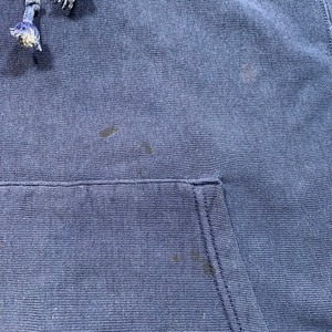 70年代頃のチャンピオンリバースウィーブスウェットパーカーです。単色タグが付くモデルで、目無しのソリッドボディです。ハトメ付近にダメージが有り、全体的にシミや汚れがみっらえます。袖リブにも若干ダメージがございます。良い塩梅に色褪せし、ヴィンテージ感あふれる1着となっています。目無し自体希少と言われていますが、単色タグ着のパーカーとなると探されている方も多いと思います。SMALLサイズですが、普段Mサイズを着用されている方でもギリギリ着れるかもしれません(実寸を参照ください)。近年人気急上昇で価格も高騰しておりますので、お探しの方は是非いかがでしょうか?