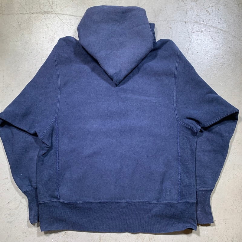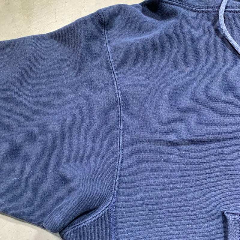 70's Champion チャンピオン リバースウィーブ スウェットパーカー 目無し ソリッド 単色タグ ネイビー SMALL ダメージ有り USA製 希少 ヴィンテージ BA-1632 RM2051H