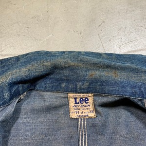 ~50's Lee 91-J デニムカバーオール チョアジャケット ロングL 傾斜e ハウスマーク直後 鬼フェード アートピース 首振りボタン size38 ゴールデンサイズ USA製 希少 ヴィンテージ BA-1634 RM2053H