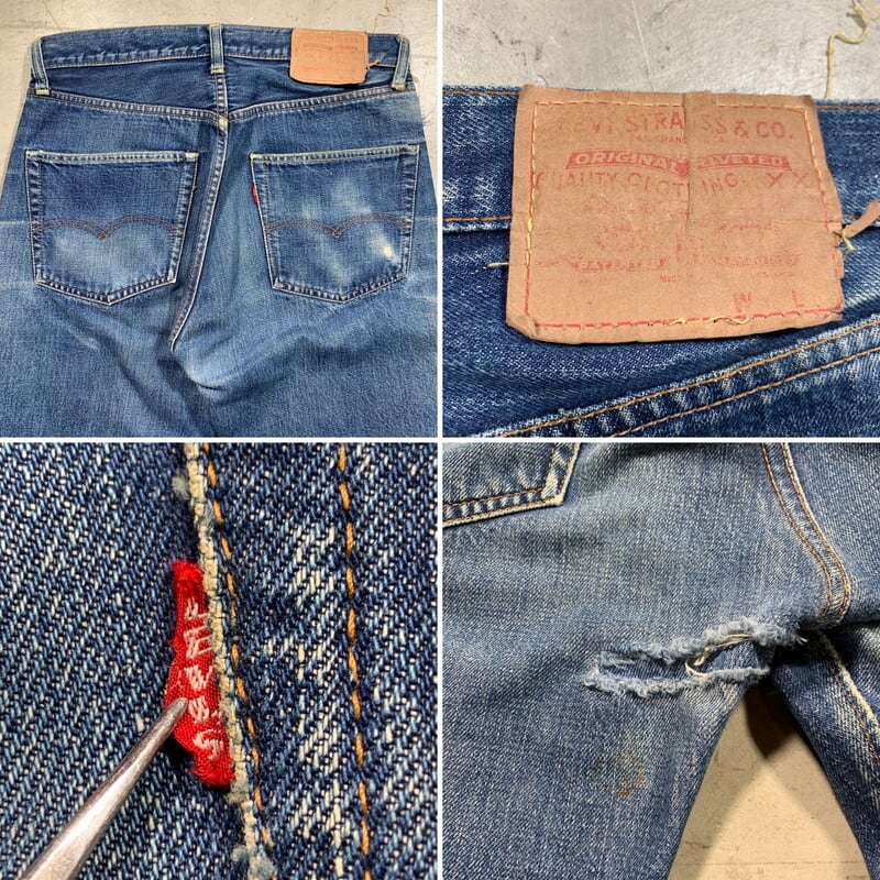 60's~ LEVI'S リーバイス 501 デニム Big E 平行ステッチ 刻印6 セルヴィッジ 足長R ズレカン W32 ダメージ リペア有 USA製 希少 ヴィンテージ BA-1643 RM2062HH