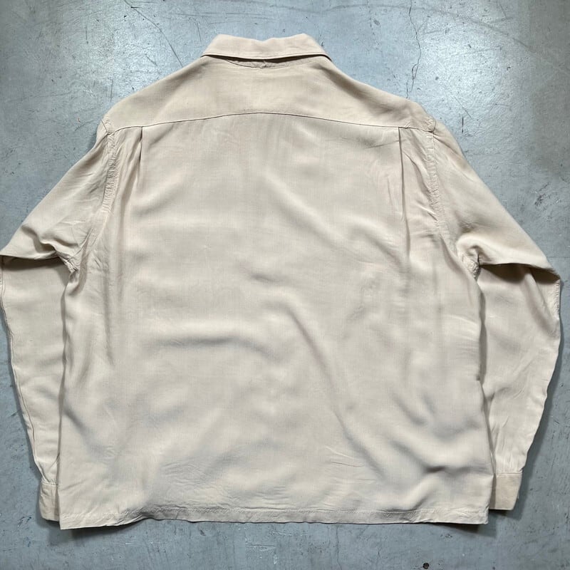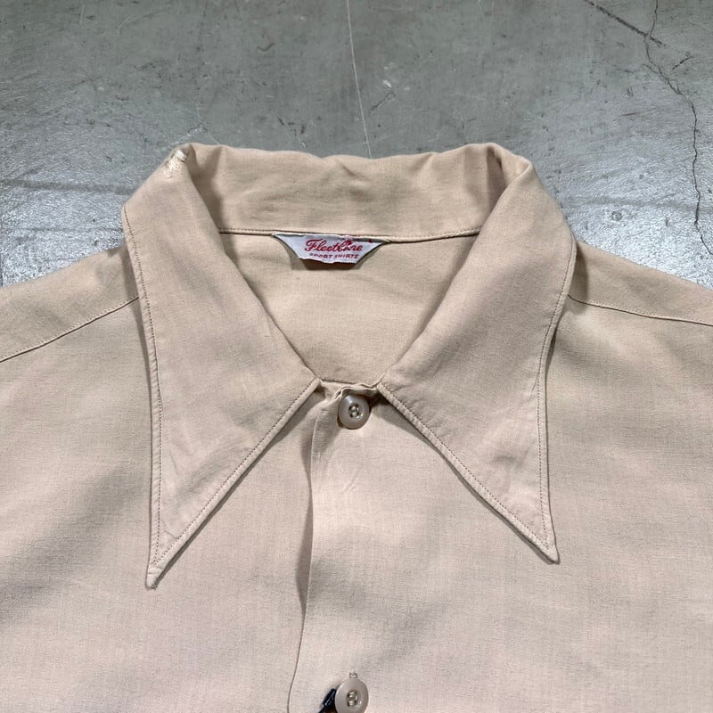 40's~ Fleetline レーヨンシャツ ロングポイント 5角形ポケット ベージュ オープンカラー ボックスシャツ Lサイズ 希少 ヴィンテージ BA-1668 RM2087H