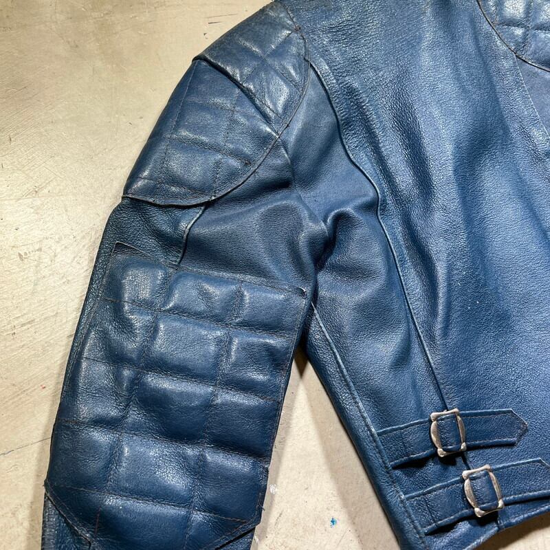 70's~ TT LEATHERS INTERNATIONAL レザーライダースジャケット パデッド ロンジャン ブルー エルボーパッド ショルダーパッド UK 36R 英国製 希少 ヴィンテージ BA-1677 RM2096H