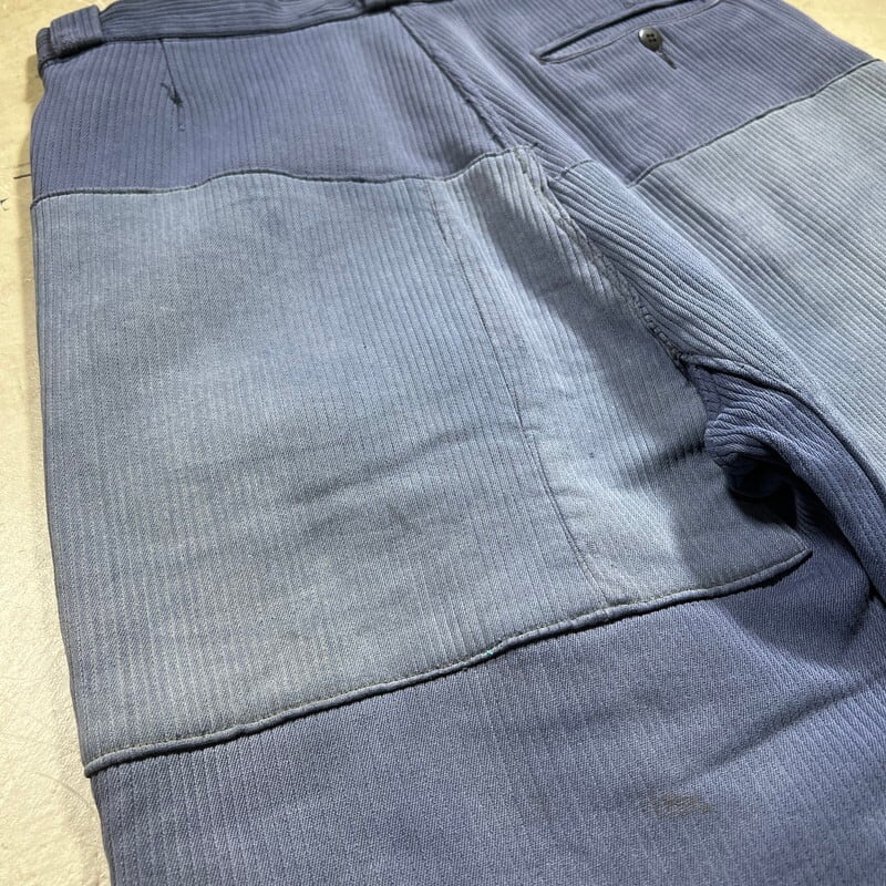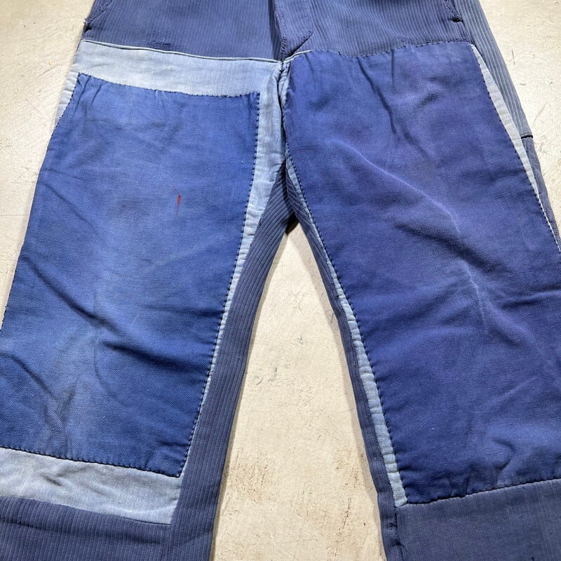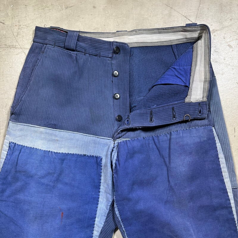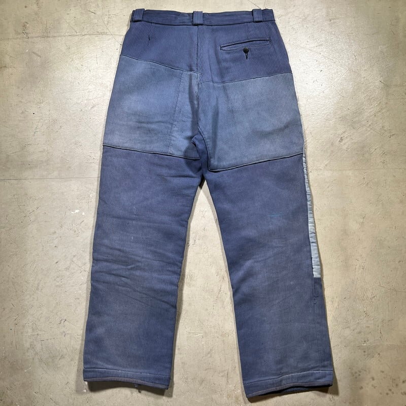 40's~ M.FAURE フレンチピケワークパンツ パッチワークリペア モールスキン インクブルー ユーロワーク W32位 希少 ヴィンテージ BA-1684 RM2103H