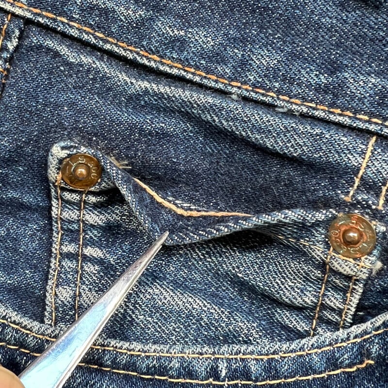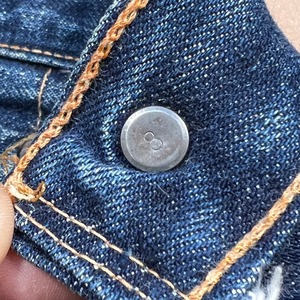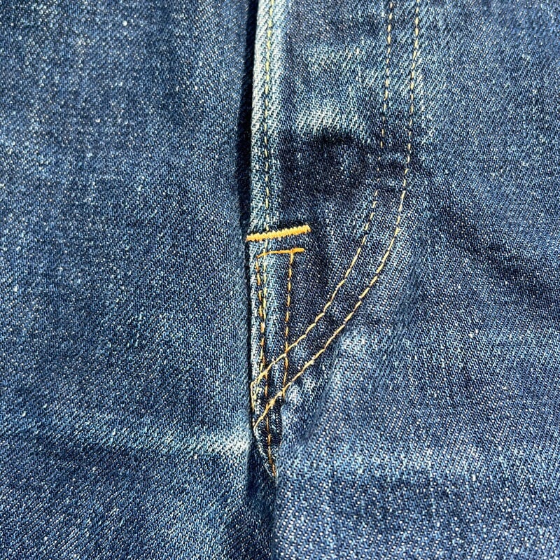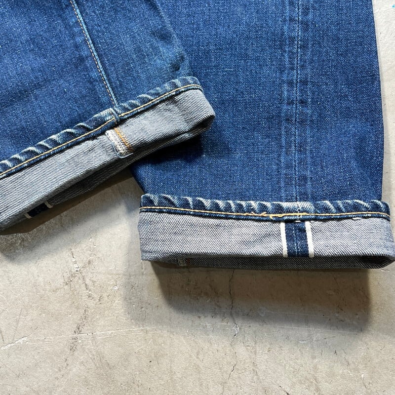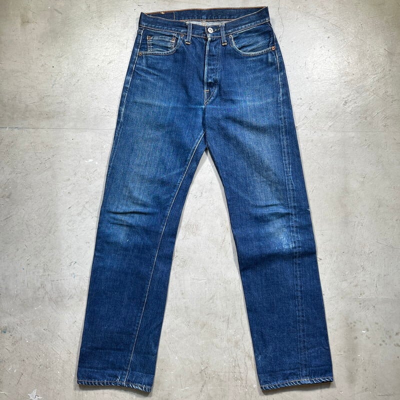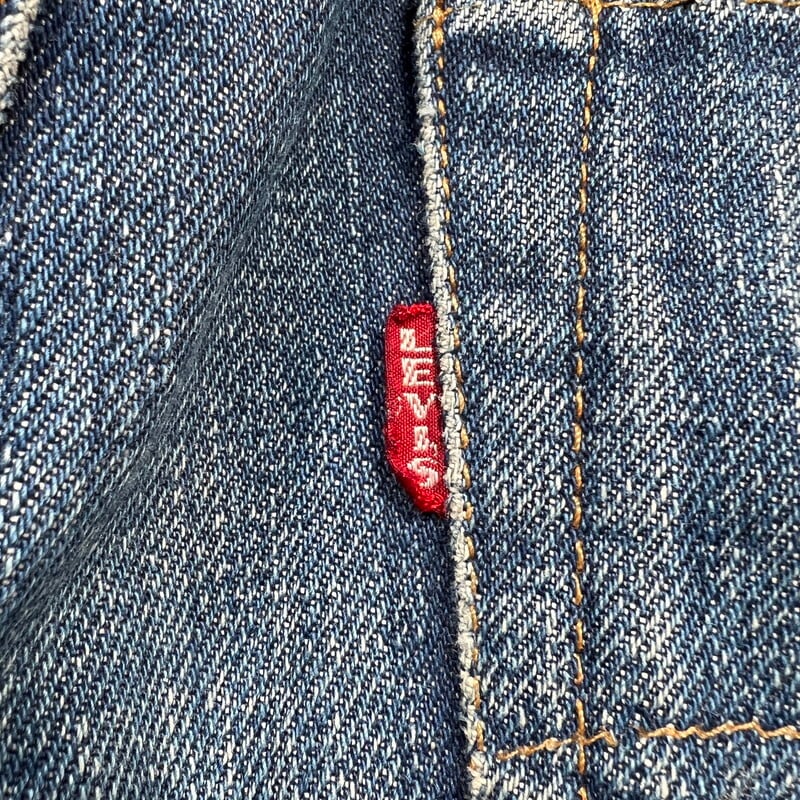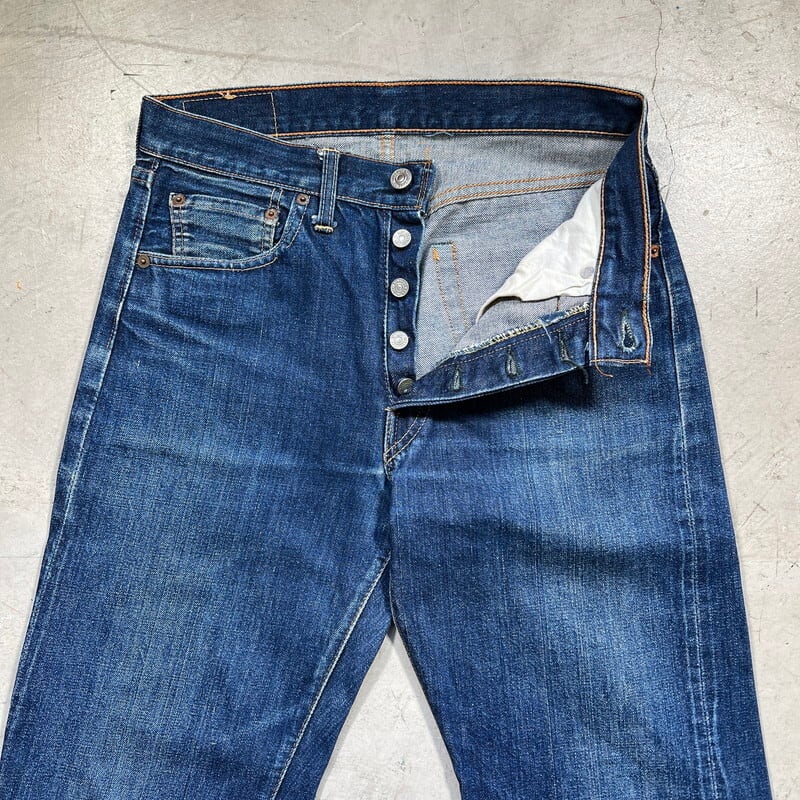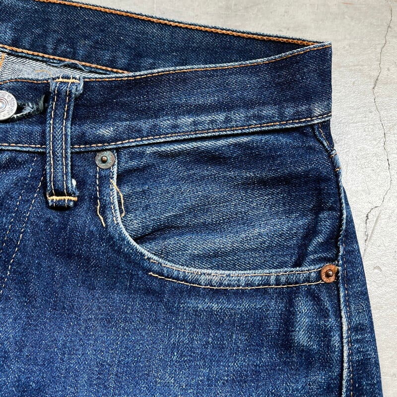 60年代から70年代頃のLEVI'S 501デニムBig Eモデルです。トップボタン裏刻印8、平行ステッチ、フライボタン足長R、ウォッチポケットチェーン、セルヴィッジ裏両面シングル、バックポケット裏シングル、不均等V、赤タブBig E。比較的色残りもあり、濃淡がしっかりと確認出来ますので綺麗な縦落ちが期待できる1本です。左膝横と、左バックポケットに小さなダメージはございますが、その他は非常にコンディションの良い個体です。ウエストはW29~30インチです。普段W29インチを履く方で、ジャスト、W30インチはギリ穿けるかなというサイズ感です。色も濃いめで状態良好ですので、サイズはやや小さめですがサイズが合う方は是非この機会にいかがでしょうか。