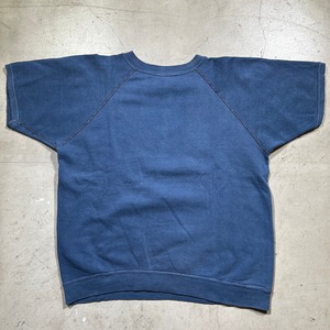 ~60's U.S.NAVY フロッキープリント 半袖ラグランスウェット ネイビー 米海軍 ミリタリープリント S~M位 希少 ヴィンテージ BA-1709 RM2128H