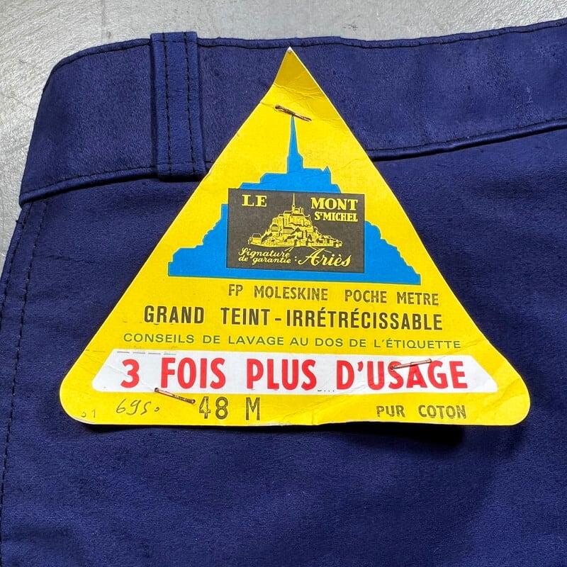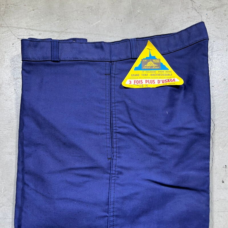 50's 60's LE MONT ST MICHEL モンサンミッシェル フレンチモールスキンワークパンツ デッドストック NOS インクブルー フラッシャー付き プリントタグ 48M W37インチ ユーロワーク 希少 ヴィンテージ BA-1714 RM2133H