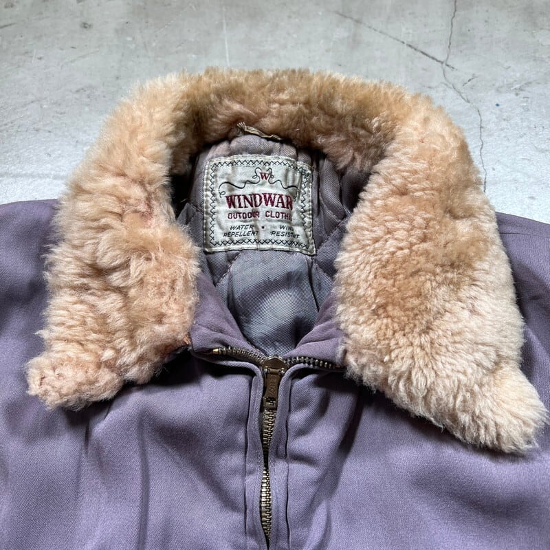 50's WINDWARD ウィンドワード ムートンカラーギャバジンジャケット MONTGOMERY WARD ストアブランド ラベンダー リアルムートン キルティング CROWN スプリング ピンロック M~L 希少 ヴィンテージ BA-1728 RM2147H