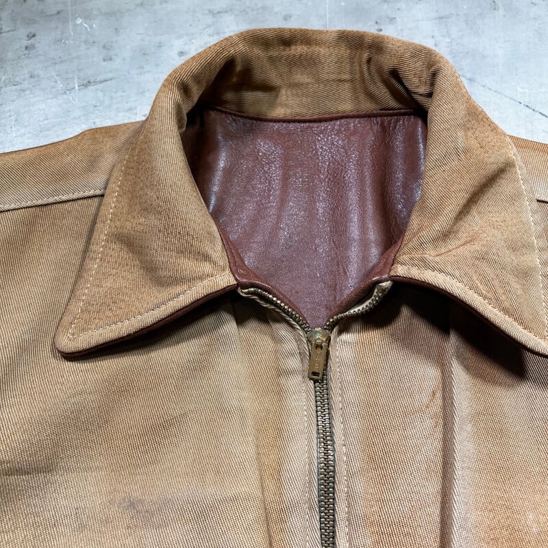 SPECIAL!! 40's Unknown レザースポーツジャケット リバーシブル シープスキン コットンギャバジン ブラウン デコTALON ボールチェーン size46 希少サイズ ヴィンテージ BA-1732 RM2151H