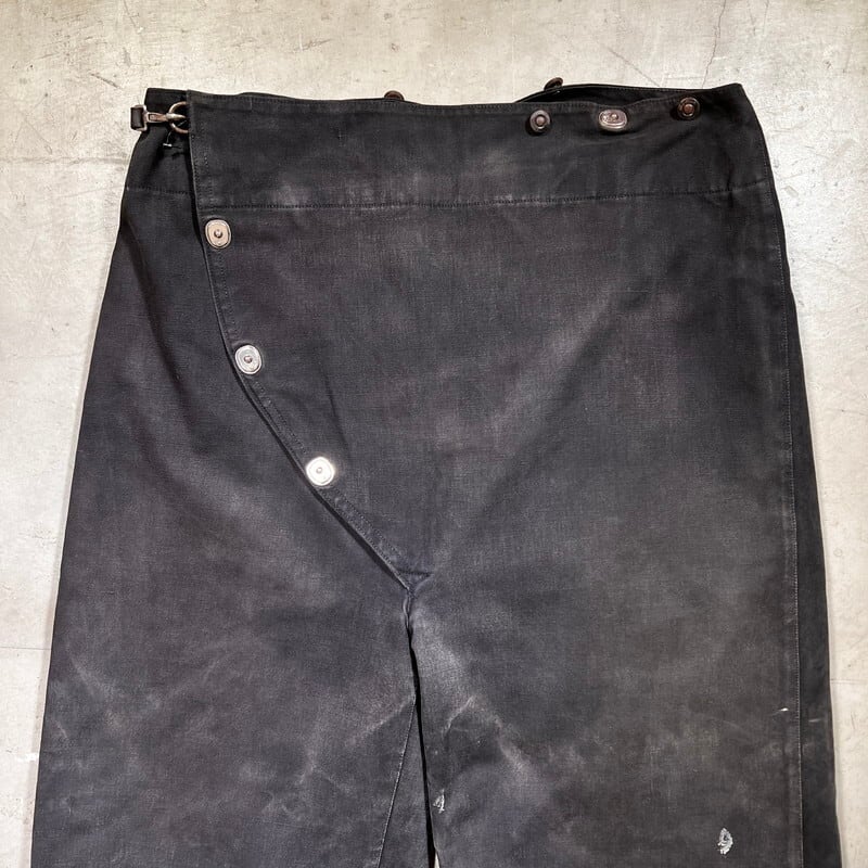 40's C.H.PETCH ファイヤーマンパンツ THE MODERN WATERPROOF COAT 撥水 消防士 WW II 第二次世界大戦 ブラック 墨黒 フェード W36~38 希少 ヴィンテージ BA-1737 RM2156H