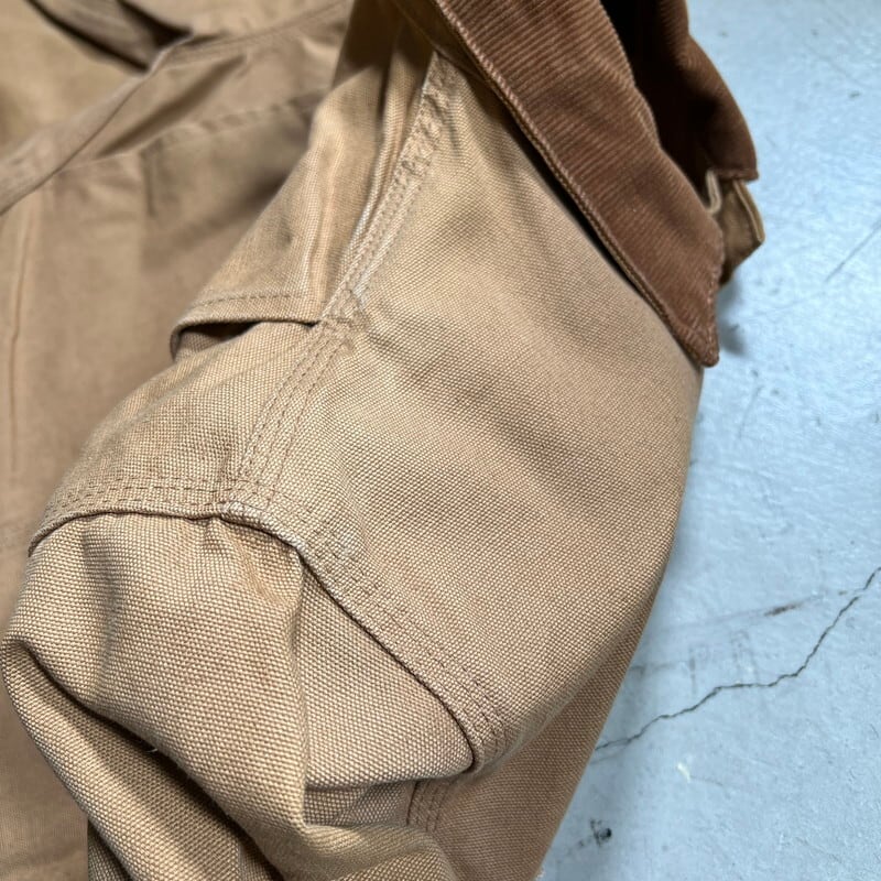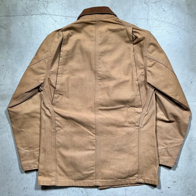 80年代頃のcarharttミシガンショアコートです。1889年アメリカはミシガン州デトロイトで創業した老舗ワークウェアブランドです。カーハートの定番アイテムの一つで、シンプルなカバーオールタイプです。こちらはブランケットライナーが付かないモデルですので、春先にも着用できます。肩周りに多少のうっすらとしたヤケはございますが、ダメージや汚れのほどんどないグッドコンディションです。サイズは意外と出にくい36ですので、男女共に着やすいサイズ感だと思います。状態も良いのでこれからの経年変化が楽しめる1着です。サイズが合う方は是非この機会にいかがでしょうか。