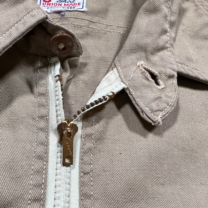 SPECIAL!! 40's 5BROTHER FIVE BROTHER ファイブブラザー ハーフジップワークシャツ チンスト マチ付き ベージュ WALDES KOVERZIP コの字 美品 38位 希少 ヴィンテージ BA-1762 RM2181H