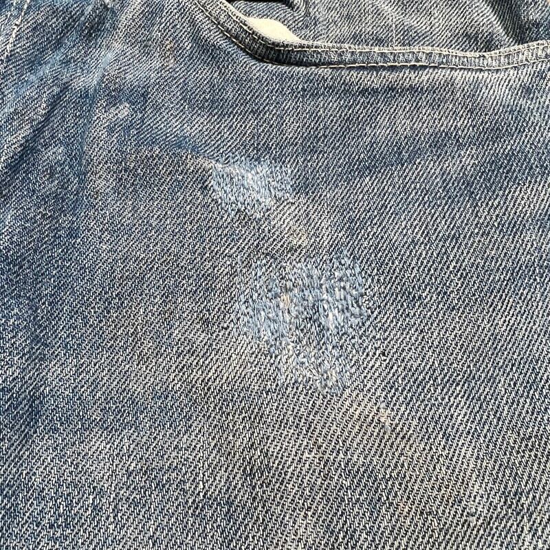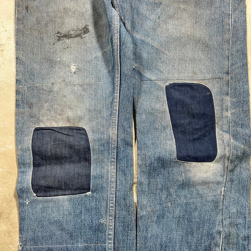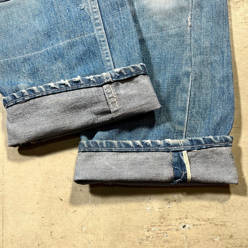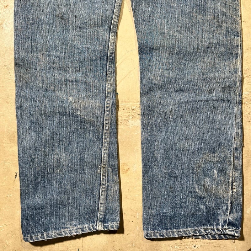 60年代頃のFOREMOST 5Pデニムパンツです。アメリカ3大ストアとして有名なJCPennyのオリジナルラインでウェスタンウェアを手がけていたブランドです。トップはブランドネームのスナップボタンで、GRIPPER社のカムロックジッパーが使用されています。全体的に色落ちし、ダメージやリペアが相まってヴィンテージらしい面構えな1本です。アウトシームのセルヴィッジは片耳仕様です。プラパッチは半分に割れ、上部2カ所のステッチが解けていますので、下部2カ所でかろうじて残っている状態です。レングスはオリジナルです。リペア多数ですが雰囲気も良く、これからの季節にシンプルな無地Tと合わせていただくと存在感も出てカッコ良いと思います。ウエストは実寸W32インチとゴールデンサイズですので、是非この機会にいかがでしょうか。ストア物で耳付きのデニムは今後さらに見つかりづらくなると思います。状態特価ですのでお早めに。