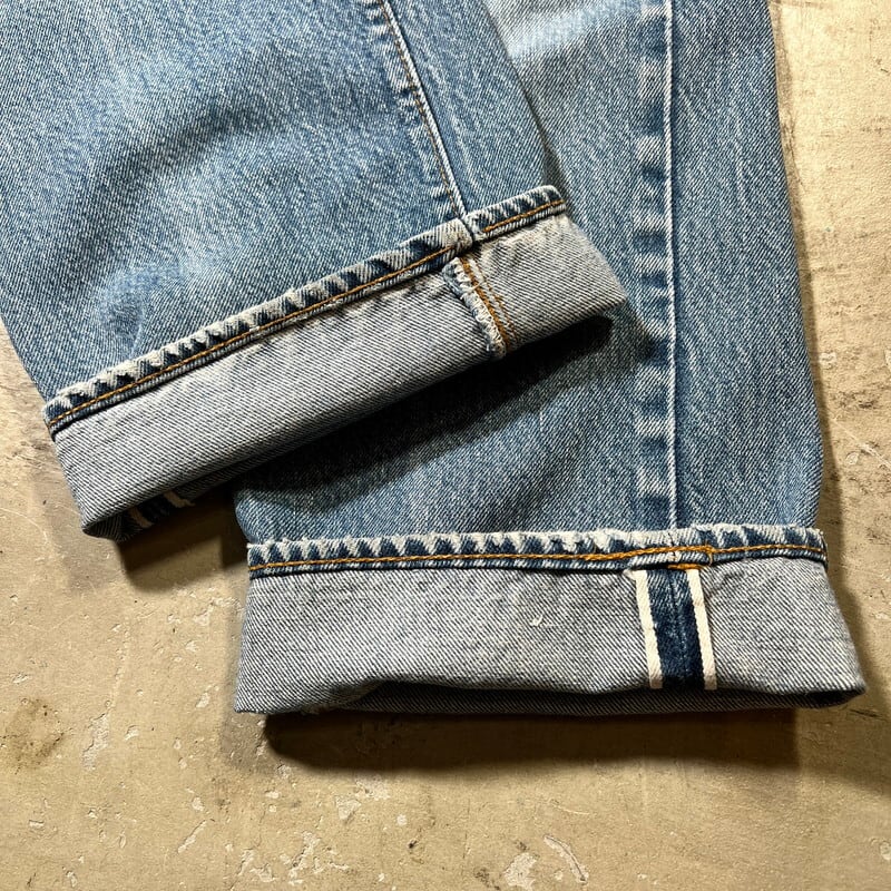 70年代後半のLevi's501 66後期モデルです。トップボタン裏ドット刻印、ウォッチポケット裏チェーン、セルヴィッジ、アウトシーム裏シングル+チェーン、赤タブスモールe、バックポケット裏チェーン、縮率8%、79年製造。全体に色落ちしており、色残りは3割程度です。色味等は80'sのレギュラーと比べてもさほど差はございませんが、やはりアウトシームにセルヴィッジが使用されているのは大きな違いで、ロールアップした時の印象は柄っと変わります。股のステッチ部分や裾に擦れによるダメージが若干ございますが、その他リペア等も特に無く状態は良好です。レングスはオリジナルのチェーンステッチです。ウエストの表記はW31ですが、実寸はW30インチです。これからの季節は無地Tだけで様になります。サイズが合う方は是非いかがでしょうか。