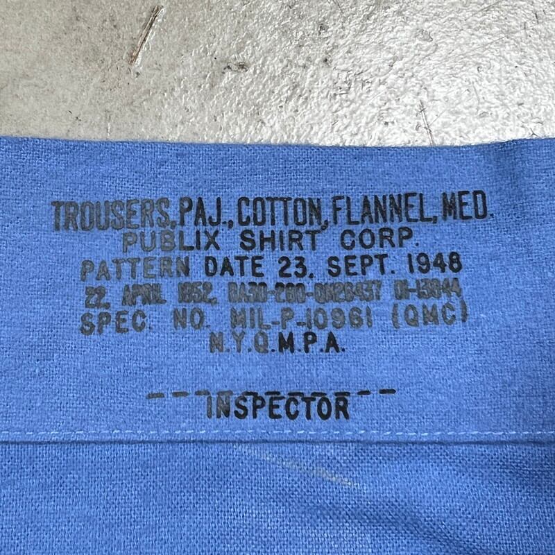 50's U.S.ARMY コットンフランネルパジャマパンツ イージーパンツ デッドストック ライトブルー MEDIUM ヤケ有 希少 ヴィンテージ BA-1780 RM2199H