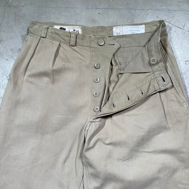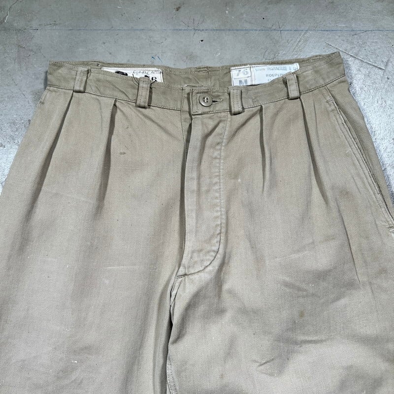 50's フランス軍 M52 チノトラウザーズ 前期型 LINNE DESMAZIERE&Cie HOUPLINES チノパン ベージュ フレンチアーミー ユーロ 2タック W28~29 希少 ヴィンテージ BA-1784 RM2203H