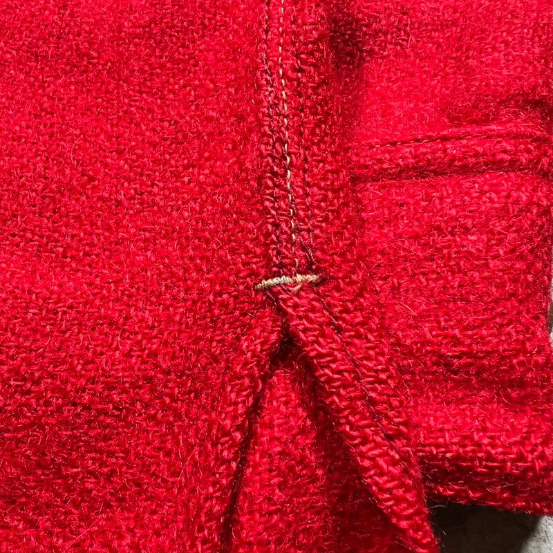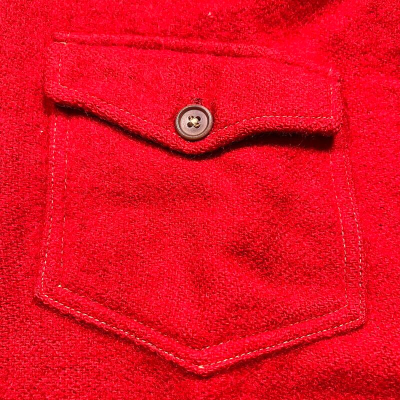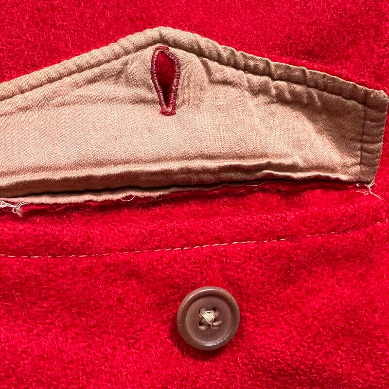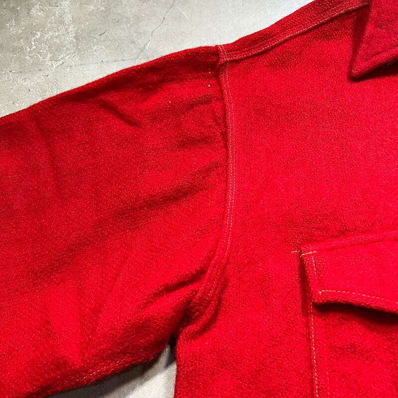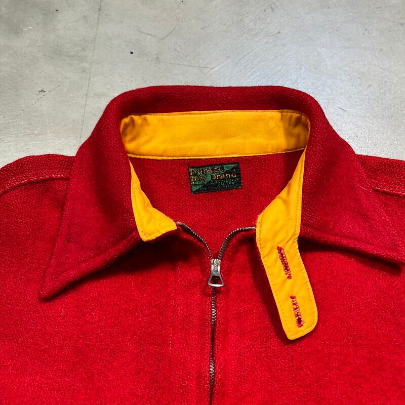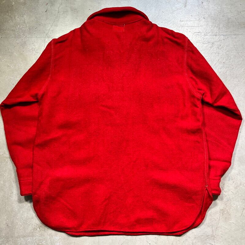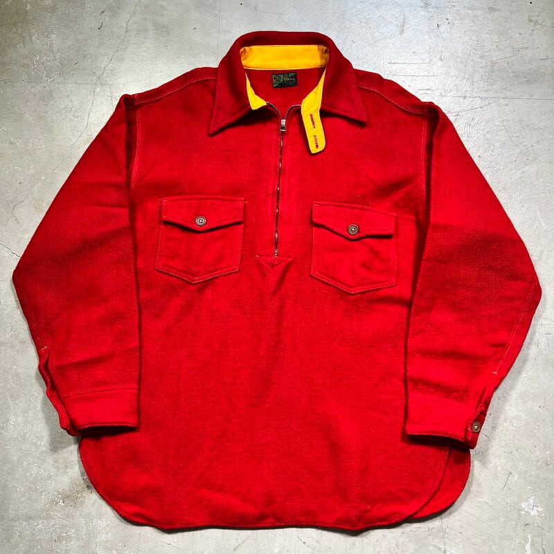20年代から30年代頃のDurabil Brandウールプルオーバーシャツです。1900年代初頭に創業したGrant-Holden Graham Ltdという会社の後継ブランドです。テントや旗、マッキーノー衣類などを製造しており、カナダ軍にも納入していた経歴があります。ご紹介するこちらはウールのプルオーバー型シャツで、襟元には長いチンストラップが付く1着です。古い年代物ではなかなか見かけない配色だと思います。ジッパーには刻印等が無いのでメーカーは不明ですが非常に滑らかでスムーズに開閉できます。ボタンは古いベークライトのような樹脂製ボタンが欠損無く残っています。フロントのジッパー下に小さく網目が広がった箇所があります。襟先などに薄汚れはございますが、その他ダメージは無くコンディションはかなり良いと思います。襟元の生地の状態から見てもほとんど使用感は無く、水にも通っていないかもしれません。サイズ表記はございませんが、L~XLとゆったりとしたサイズ感です。コンディションに加えなかなか珍しい配色ですので、探したとしてもそうそう見つからないアイテムです。オンブックになってもおかしくないスペシャルピースですので、是非コレクションしてみてはいかがでしょうか。