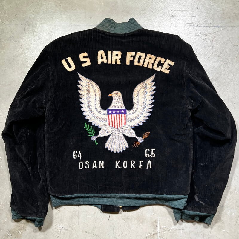 SPECIAL!! ~60's U.S.AIR FORCE ブラックコーデュロイ スーベニアジャケット コリジャン 龍 白頭鷲 刺繍 レア 64 65 OSAN KOREA ローカルメイド 40位 希少 ヴィンテージ BA-1800 RM2219H
