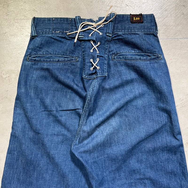 SPECIAL!! 40~50's Lee リー バックレースアップデニムパンツ ストレート 21-5Z 赤タグ ロングL GRIPPERジッパー グッドコンディション レア W28~31 希少 ヴィンテージ BA-1817 RM2236H