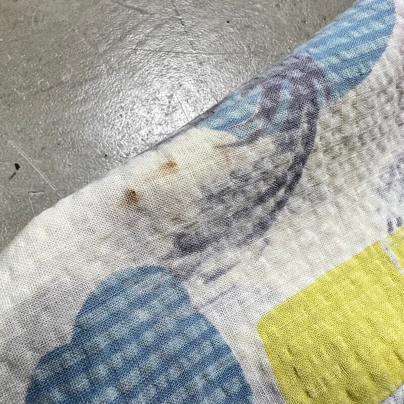 40年代から50年代頃のUnknownシアサッカーシャツです。タグが欠損していますので、ブランド等の詳細は不明です。コットン100%のシアサッカーで肌ざわりが良くこれからの季節に大変使い易いアイテムです。40年代頃の見られる襟先の長いロングポイント仕様です。ループ用の第一ボタンはシェル、その他はベークライトボタンが使われています。古いベークライトですので、ひび割れがございます。肩や背中付近は日焼けで色褪せております。細かなシミ等もございます。擦れ等もあり、右わき腹下部にハンドリペアで小穴を塞いだ箇所がございます。サイズは恐らくL相当です。爽やかなマルチカラーで主張しすぎないパームツリーが良い雰囲気です。ショーツはもちろん、デニムや軍パンとも相性が良いのでお勧めです。