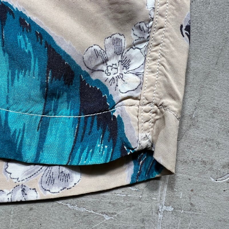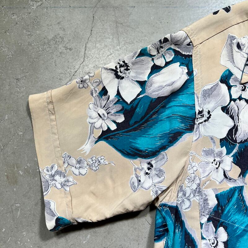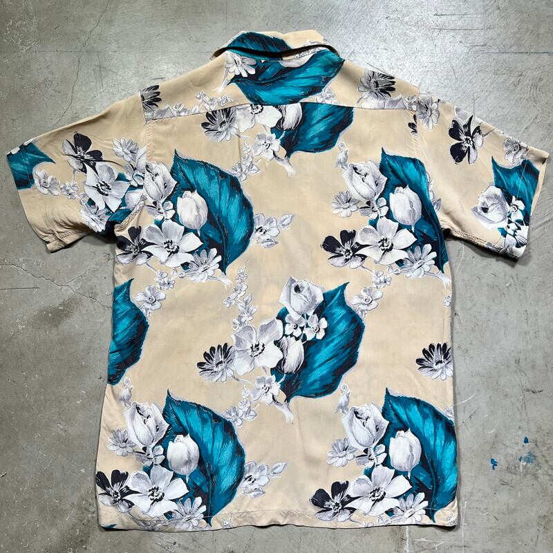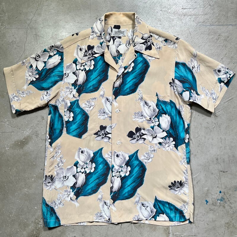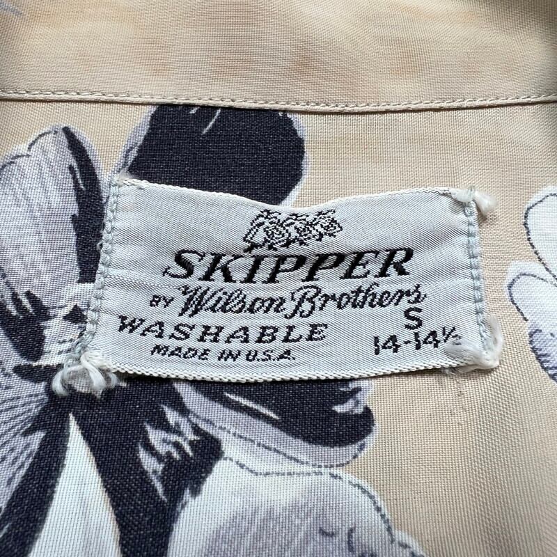 50's~ SKIPPER BY Wilson Brothers レーヨンハワイアンシャツ アロハシャツ フラワー柄 ベージュ ロングポイント Sサイズ USA製 希少 ヴィンテージ BA-1828 RM2247H