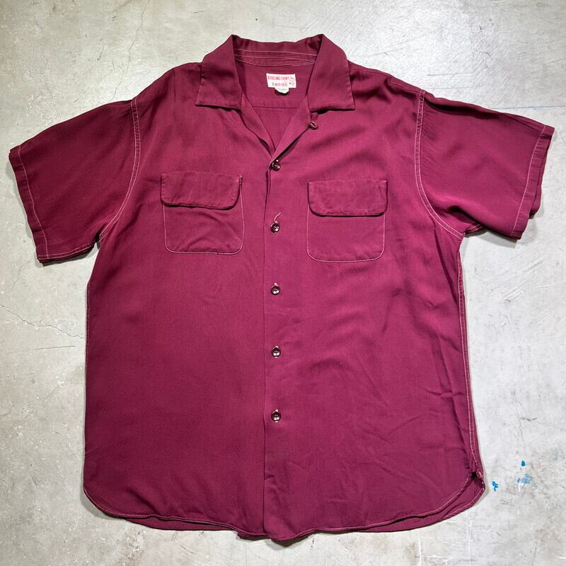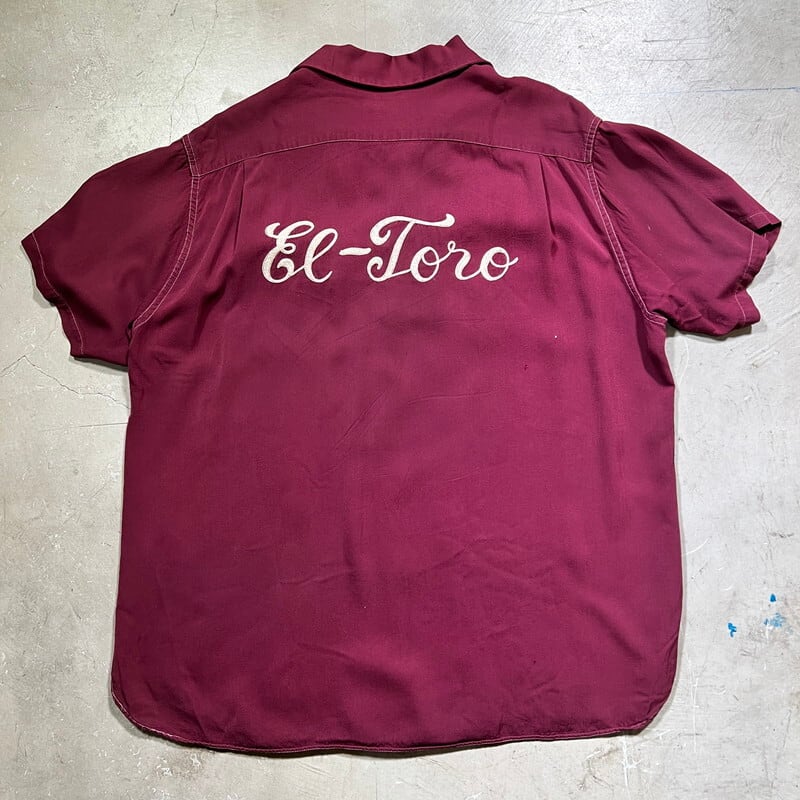 50's~ BOWLING SHIRT BY EMPIRE レーヨンギャバジンボーリングシャツ El-Toro 地名 チェーンステッチ エンジ ワインレッド 袋襟 サイドマチ付き Lサイズ 希少 ヴィンテージ BA-1831 RM2250H