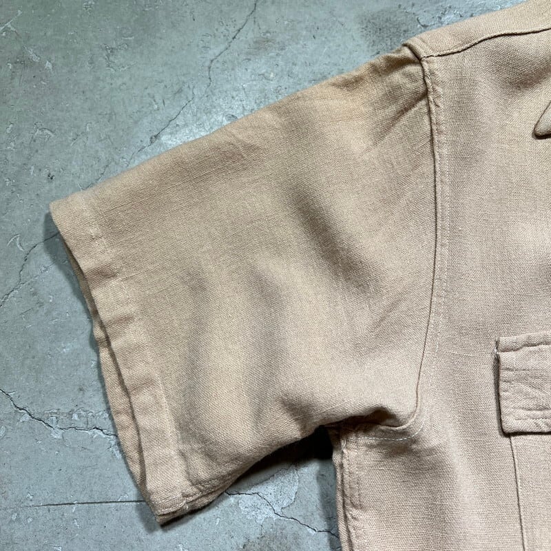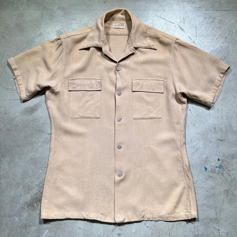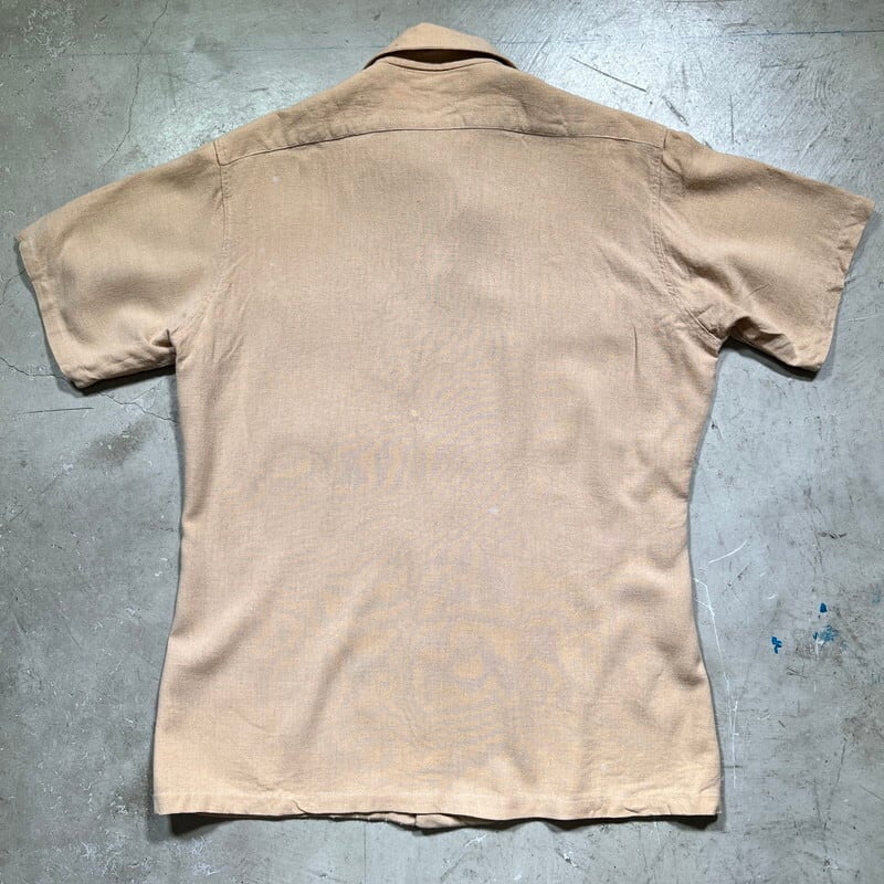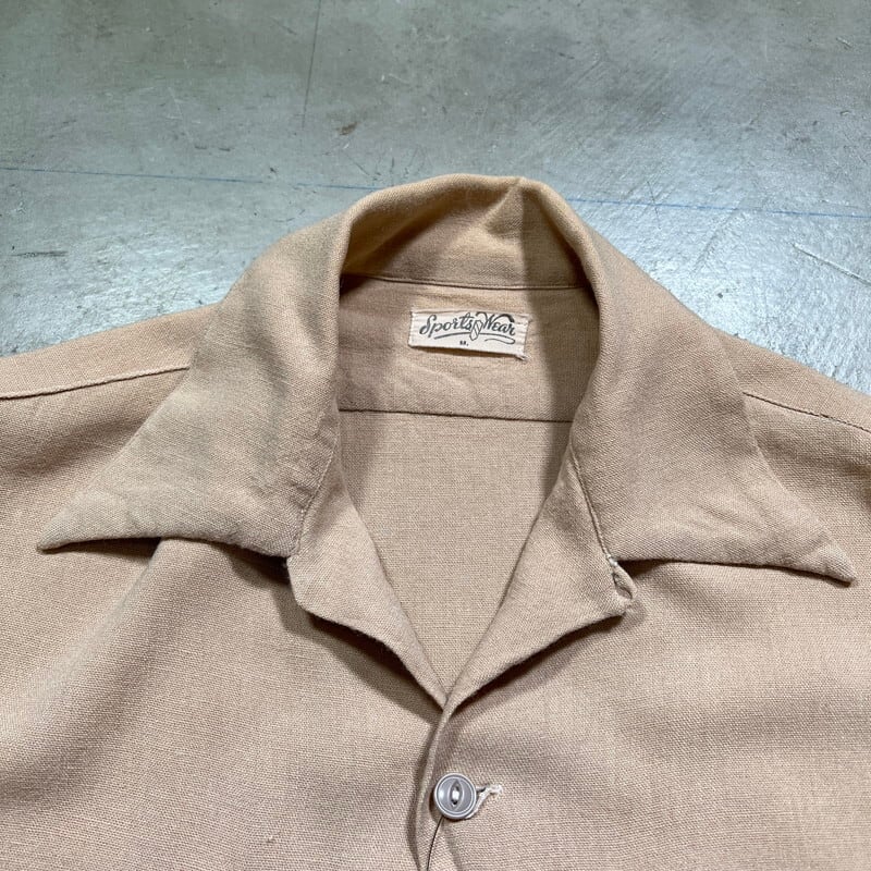 40's Sports Wear オープンカラーシャツ ボックス ロングポイント 猫目ボタン ベージュ 開襟シャツ Mサイズ 希少 ヴィンテージ BA-1835 RM2254H