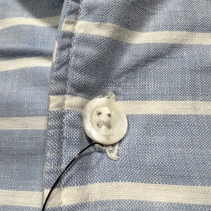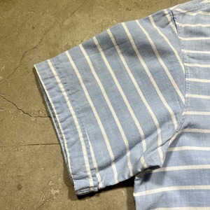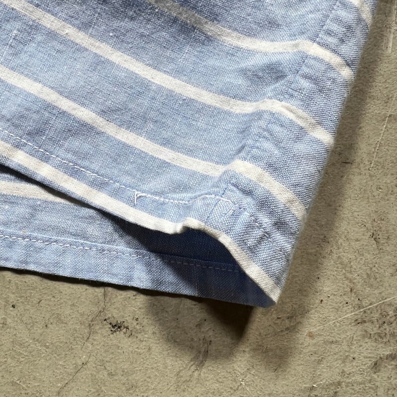 60's~ Eichsfeld Konfektion コットンボーダーイタリアンカラーシャツ ユーロ ドイツ ライトブルー シェルボタン 開襟 size39 M相当 希少 ヴィンテージ BA-1838 RM2257H