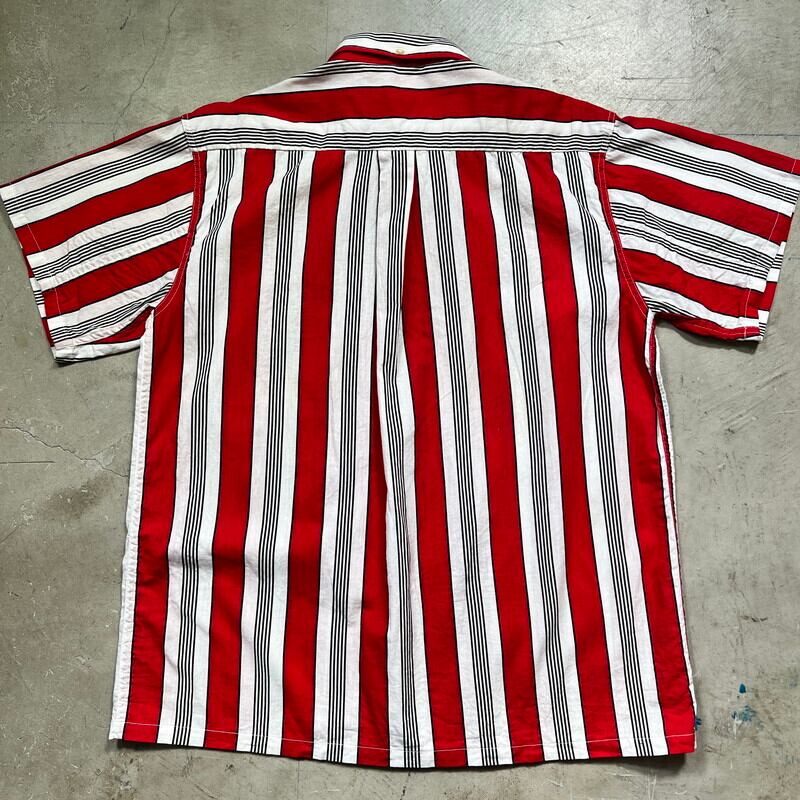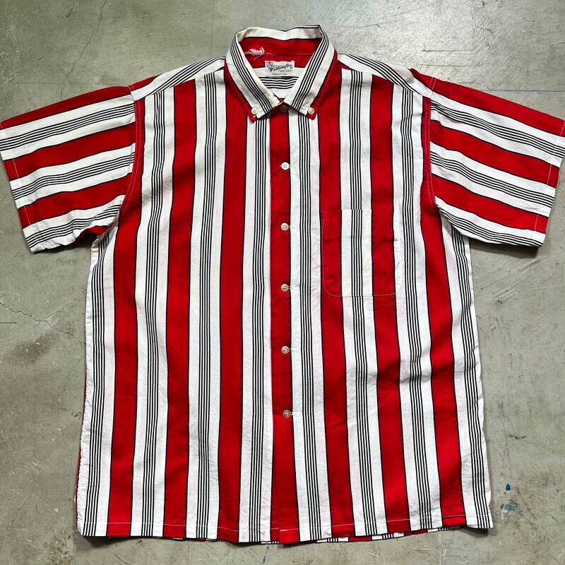 60's Washington DEE CEE プリントコットンマルチストライプBDシャツ 3点留め ボックスシャツ 赤 白 グッドコンディション Mサイズ 希少 ヴィンテージ BA-1840 RM2259H