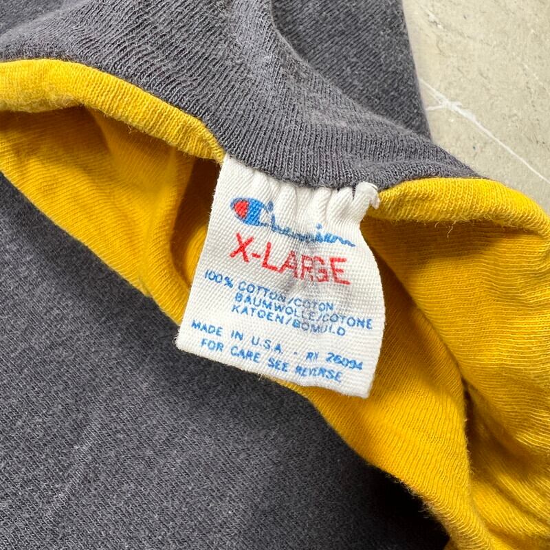 80's Champion チャンピオン リバーシブルTee カプセル3段プリント McQUAID カレッジプリント ネイビー イエロー トリコタグ XL USA製 希少 ヴィンテージ BA-1845 RM2264H
