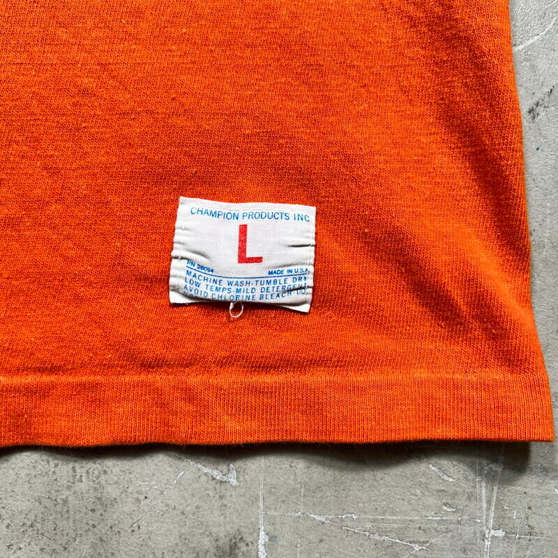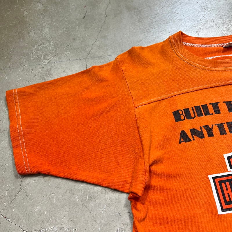 70's Champion チャンピオン HARLEY DAVIDSON フットボールTee バータグ BUILT TO HANDLE ANYTHING オレンジ LARGE USA製 希少 ヴィンテージ BA-1847 RM2266H