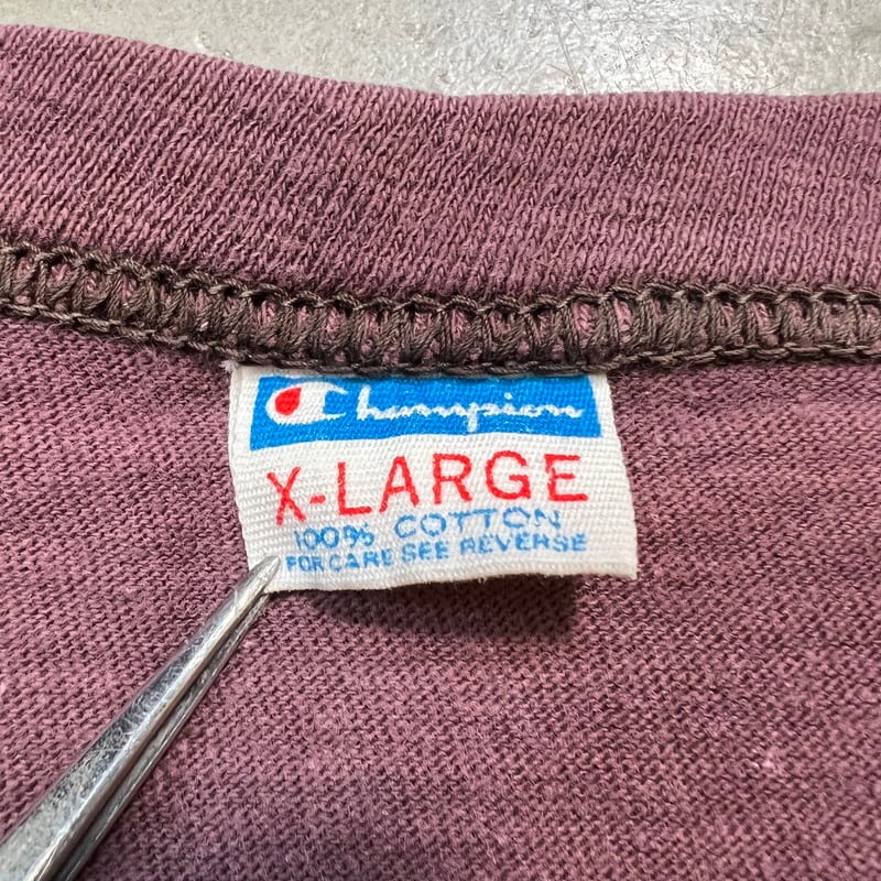 70's Champion チャンピオン カレッジTee バータグ UNIVERSITY WYOMING ワイオミング大学 エンジ フェード X-LARGE USA製 コットン100% 希少 ヴィンテージ BA-1848 RM2267H