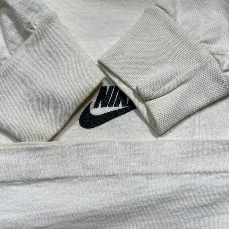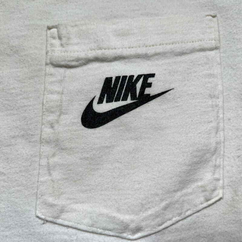 80's NIKE ナイキ 胸ポケット付きロンTee L/Sカットソー 袖プリント 紺タグ TM ホワイト 白 Sサイズ USA製 希少 ヴィンテージ BA-1864 RM2283H