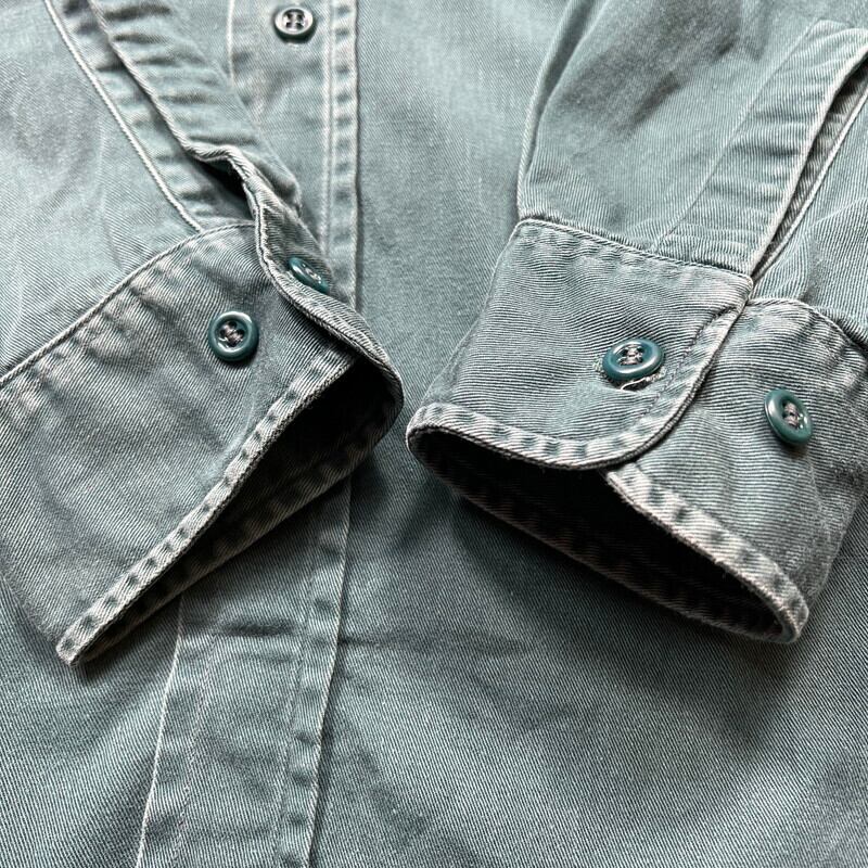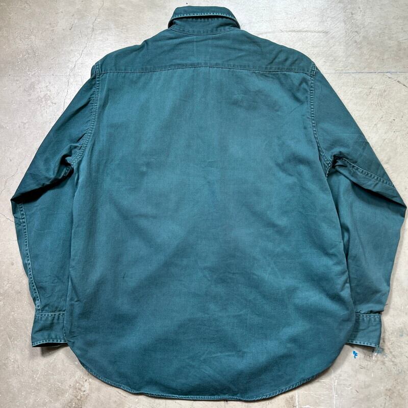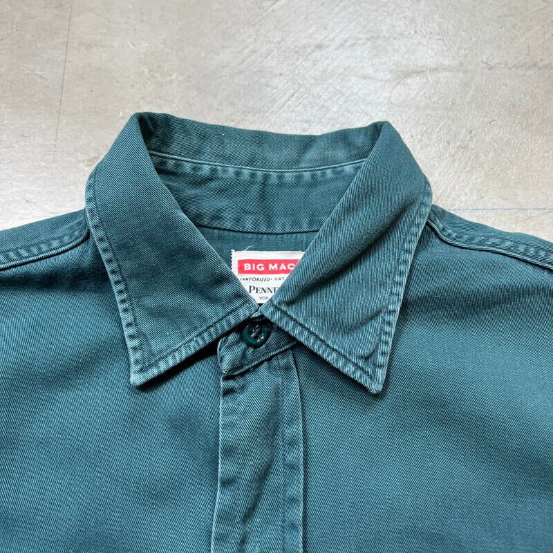 60's BIG MAC ビッグマック コットンツイルワークシャツ VAT DYED バットダイ グリーン サイドマチ付き リペア有 ワッペン 16M 希少 ヴィンテージ BA-1885 RM2304H
