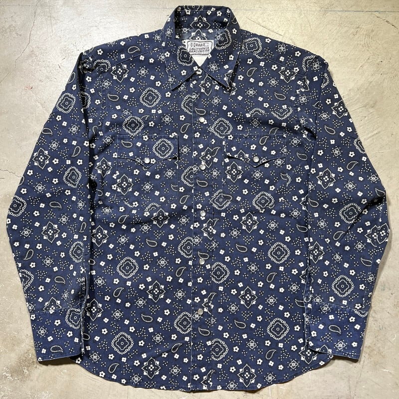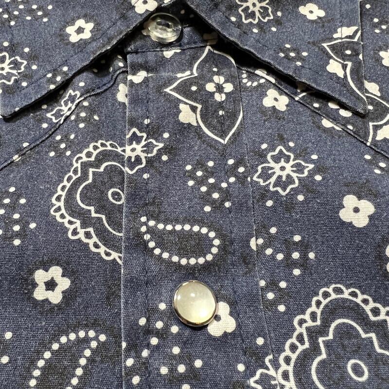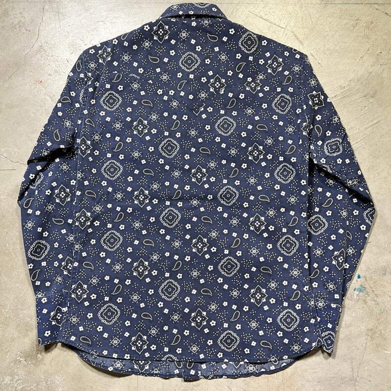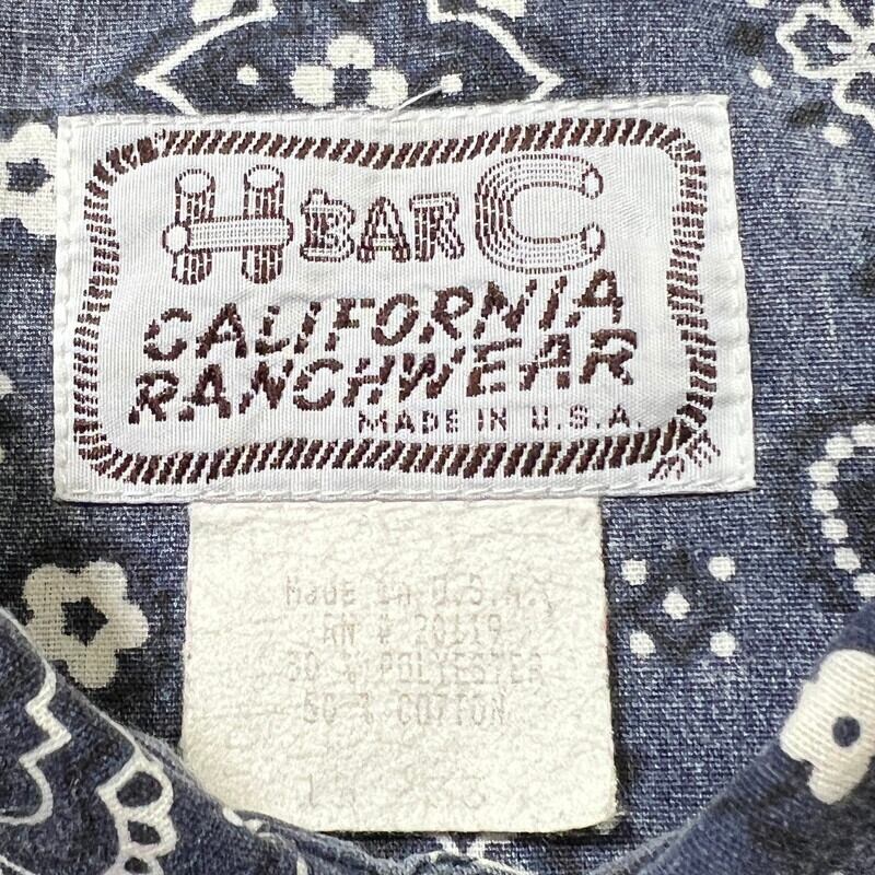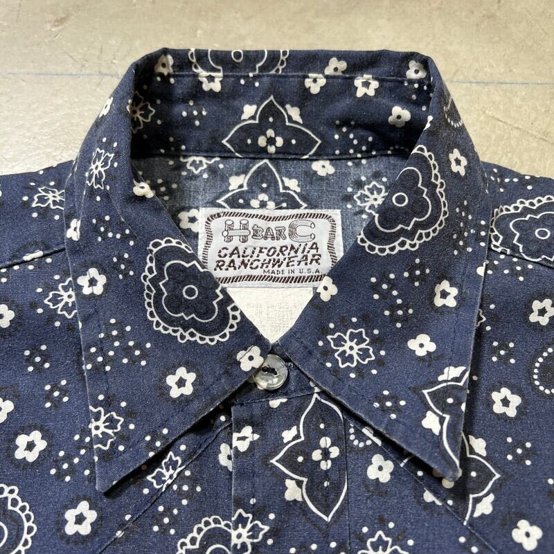 70's~ H BAR C バンダナ柄 ウェスタンシャツ ネイビー レアカラー ペイズリー 抜染 プリント M位 希少 ヴィンテージ BA-1889 RM2308H