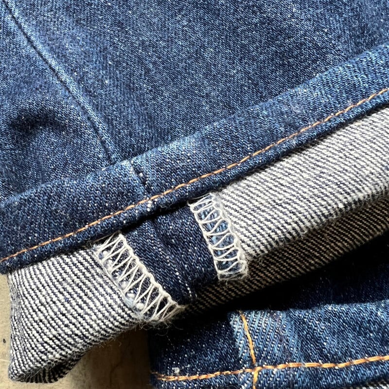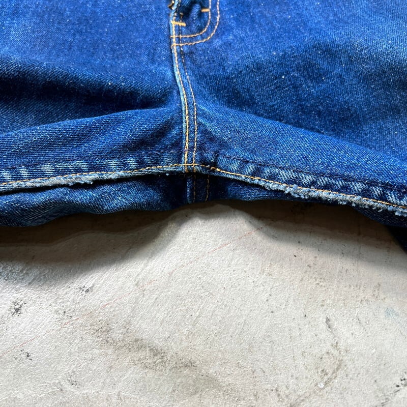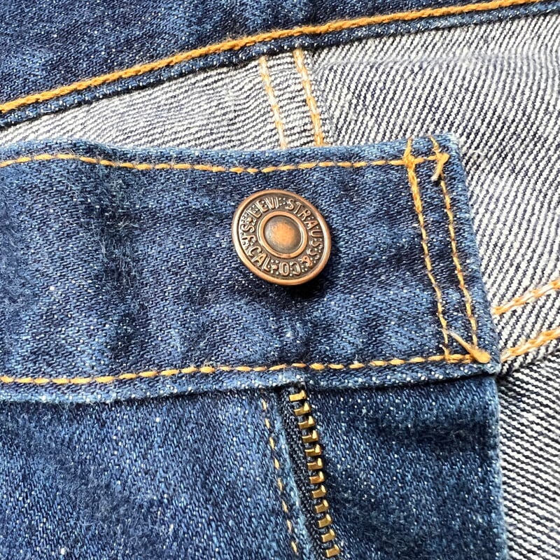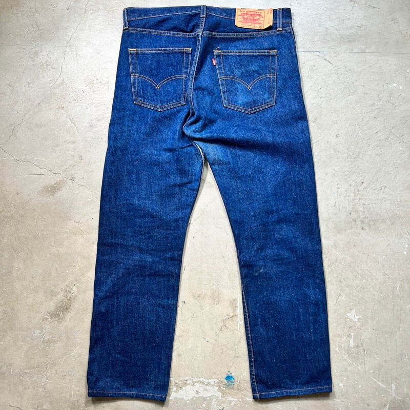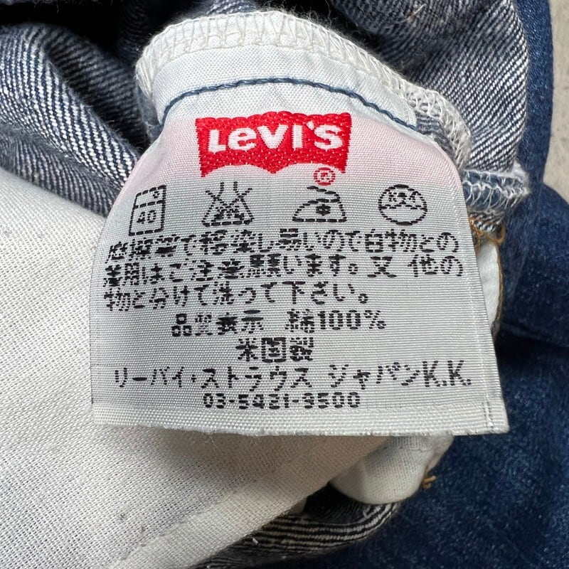 2000年製造のLevi's 505デニムパンツです。2003年にアメリカでの生産が終了しましたので、USA製の最終期にあたるモデルです。トップボタンうら刻印379、社名入りジッパー。色残りは8割程残る濃い個体です。内股に若干の擦れがあり、バックポケットに財布を入れていた際にできる色落ちも見られます。その他sの多ダメージや汚れは特に無く状態は良好です。ウエストはW36インチで、程よくゆったりと穿いていただけます。2000年製造で比較的年代は浅いですが、20年以上も前のモデルですので、今後徐々に見つかりづらくなってくるのかもしれません。色味もまだ濃くエイジングも楽しめると思います。オリジナルのUSA製モデルは今持っておいて損はないと思いますので、サイズが合う方は是非この機会にいかがでしょうか。