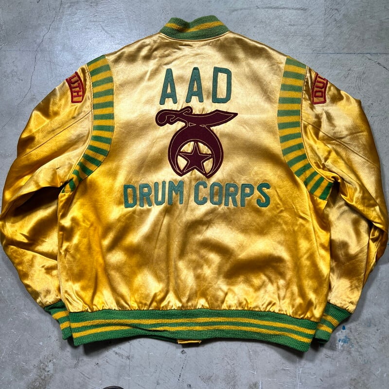 40's~ Nelson Sports Wear ネルソン サテンボタンスタジャン ボタスタ Shriners シュライナー AAD DRUM CORPS マーチング フリーメイソン 秘密結社 パチポケ ビッグサイズ 42 NELSON Knitting Mills 希少 ヴィンテージ BA-1897 RM2316H