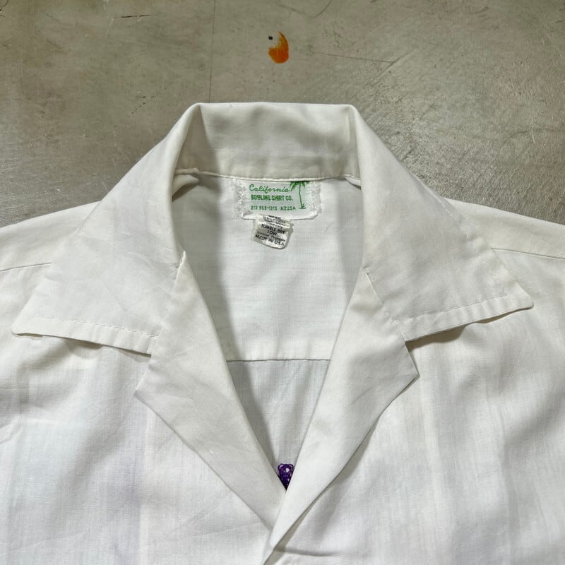 60's~ California BOWLING SHIRT CO. ELKS LODGE HEMET メンバーズシャツ ボーリングシャツ チェーンステッチ ホワイト パープル 社交クラブ M相当 USA製 希少 ヴィンテージ BA-1909 RM2328H