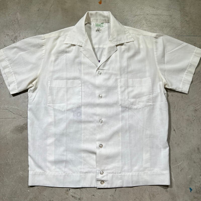 60年代から70年代頃のCalifornia BOWLING SHIRT CO. ELKS LODGE HEMET メンバーズシャツです。ELKSとは1868年に社交クラブとしてニューヨーク市で設立された友愛団体です。ショート丈のボーリングシャツにの背面にELKSのモチーフであるヘラジカのような動物が刺繍されています。ボーリングシャツというよりは集まりの際に着用するメンバースシャツのような意味合いで使用されていたのかもしれません。タグの解れやうっすらとした汚れ、若干の脇シミ、背面チェーンステッチの解れ等ございますが、目立つダメージは特になく生地の状態としては良好だと思います。サイズ表記はございませんが、着丈の短いM相当といったところでしょうか。身幅はゆとりがございます。丈が短めなので女性や小柄な方でも合わせやすいと思います。フリーメイソンのような友愛団体関連のアイテムはコレクターも多くお好きな方も多いのでは無いでしょうか。気になる方は是非この機会にいかがでしょうか。