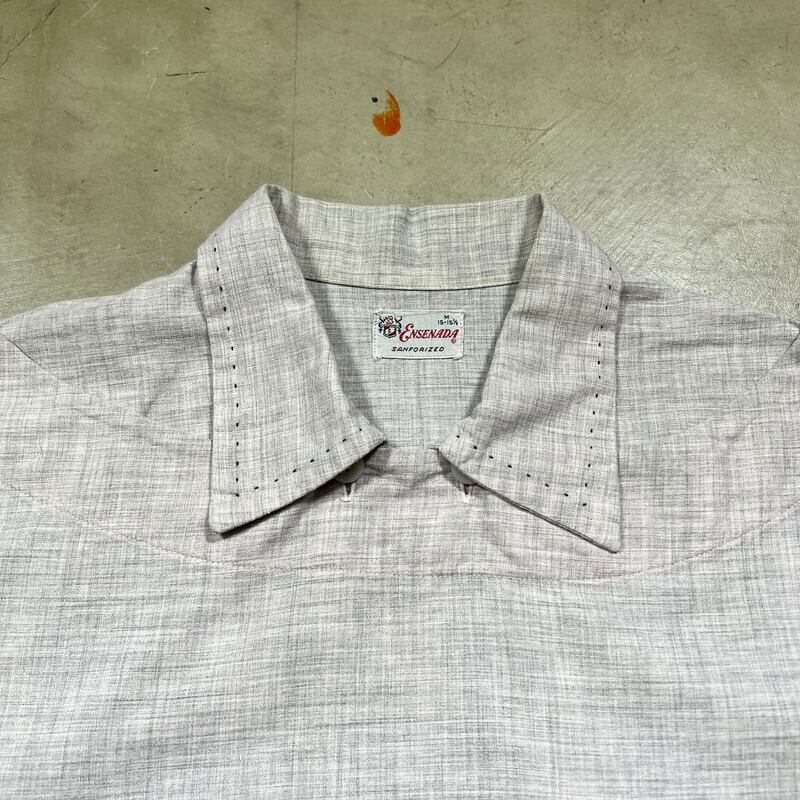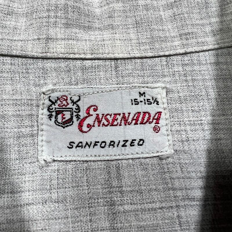 50's ENSENADA ピーターパンシャツ コットン 絣柄 グレーピンク 珍品 プルオーバーシャツ ロカビリー Reliance Manufacturing Co グッドコンディション Mサイズ 希少 ヴィンテージ BA-1924 RM2343H