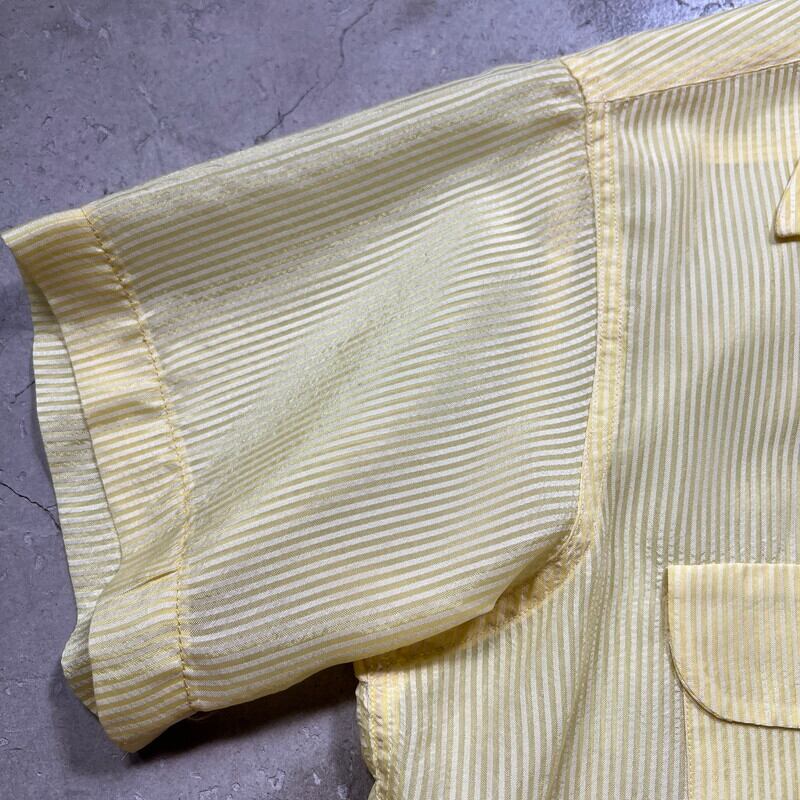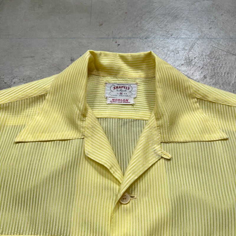 50's SHAPELY by Mack シェイプリー シースルーオープンカラーシャツ NORLON ナイロン オーロン 開襟 イエロー ストライプ ボックスシャツ THE MACK SHIRT COAP Mサイズ 希少 ヴィンテージ BA-1926 RM2345H
