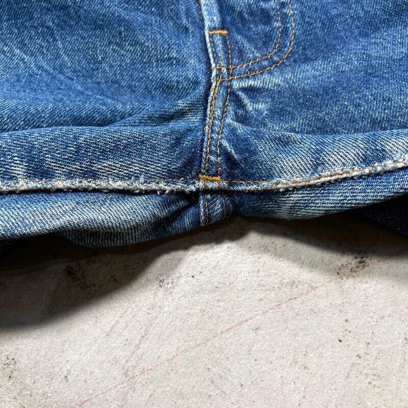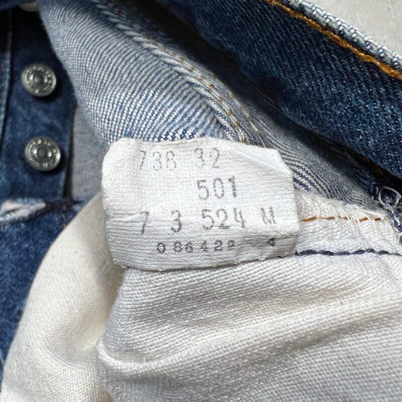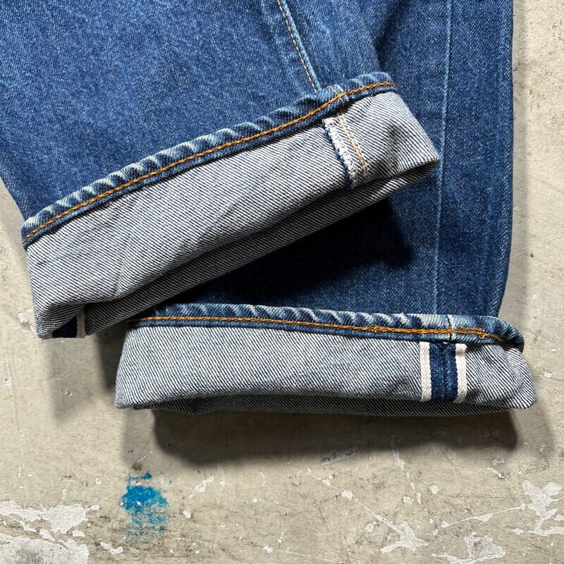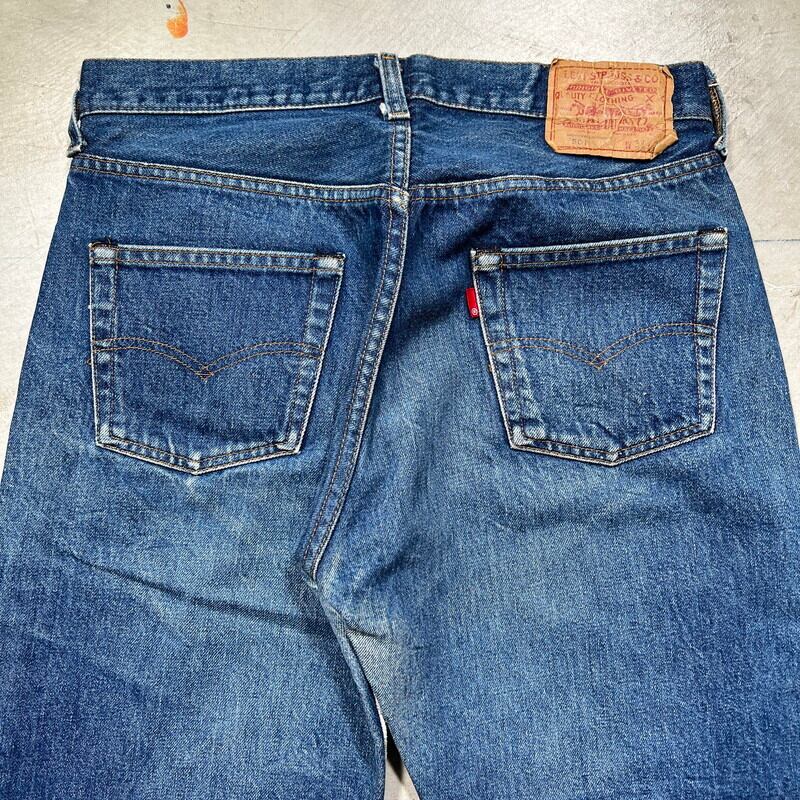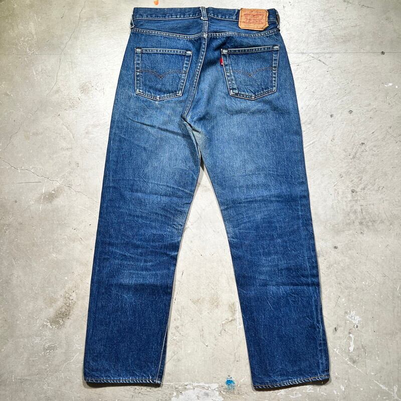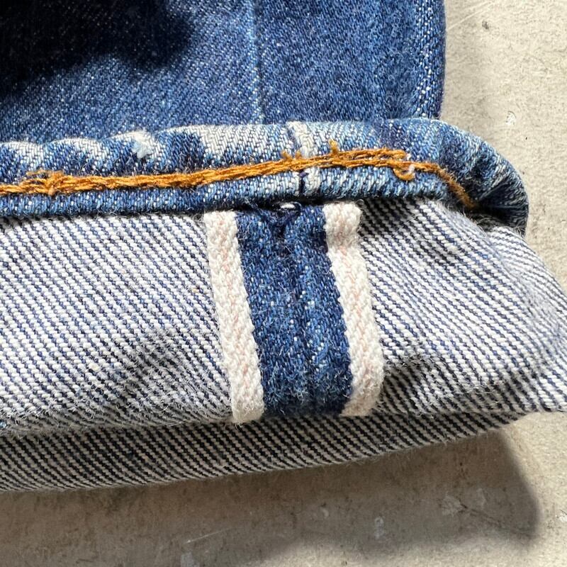80年代のLevi's501デニムパンツです。トップ裏刻印524、縮率10%、アウトシームセルヴィッジ、内股シングル、閂ブラック。所謂赤耳と呼ばれる耳が付く最後のオリジナルデニムでこのモデル以降はセルヴィッジが廃止されます。色残りは6割位で、うっすらとですが、ヒゲやハチノスが入ります。バックポケットの赤タブは、ブランクタブが付きます。内股に若干擦れはございますが、その他ダメージ等なくコンディションは良好です。表記はW33ですが実寸は約W31インチです。サイズやコンディションも良くこれからの英人ぐも楽しめる1本だと思います。今後も価格の高騰が予想されますので、サイズが合う方は是非この機会にいかがでしょうか。