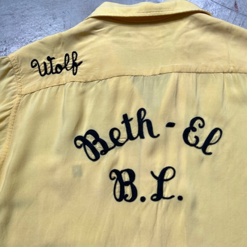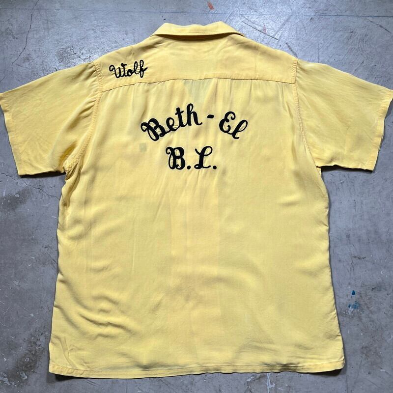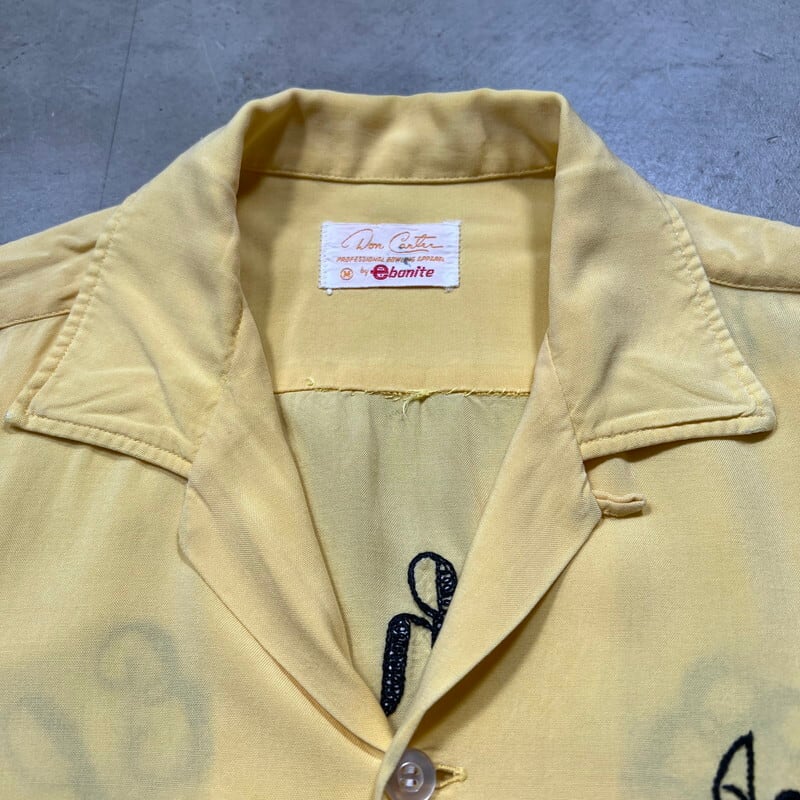60's Don Carter by ebonite ボーリングシャツ チェーンステッチ Beth-El イエロー レーヨン 襟芯有り ダブルステッチ Mサイズ 希少 ヴィンテージ BA-1951 RM2370H