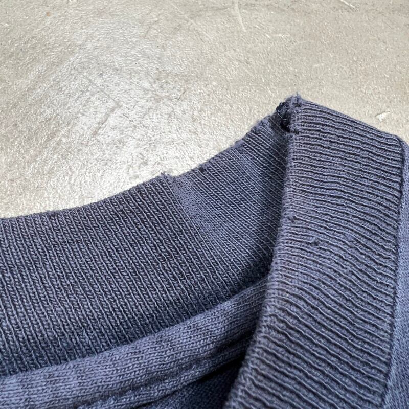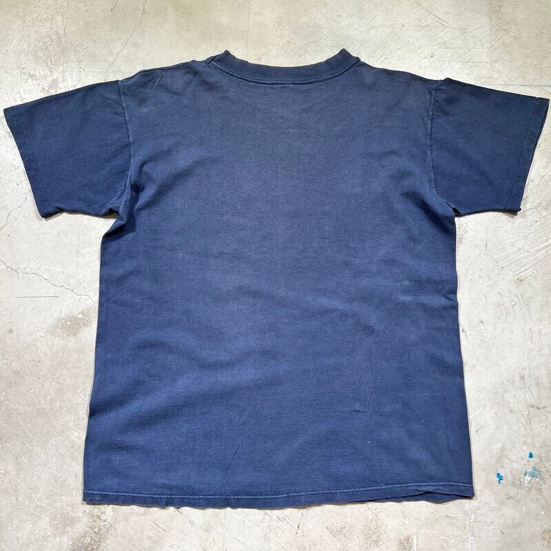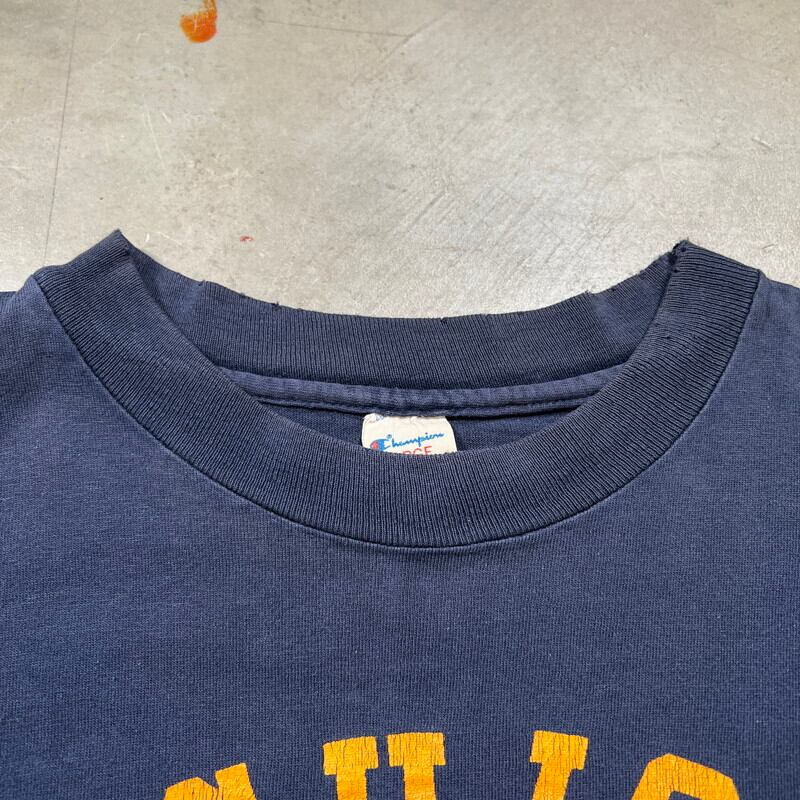 80年代のChampionカレッジTシャツです。トリコタグが付くこちらは、1817年に現ミシガン州で設立されたアメリカで最も歴史のある大学として知られているMICHIGAN大学のラバープリントが入ります。ネイビーにイエローというアメカジの王道カラーで、プリントのクラック具合も良い雰囲気の1着です。袖はシングル、裾はダブルステッチで縫製されています。全体的に程よくフェードしています。ネックリブに細かなダメージとヤケが見られます。古着にありがちな脇下のダメージ等無くその他のコンディションは良好です。LARGE表記で、撚れも少ない個体です。この時期ですとベイカーパンツなどのミリタリーパンツと相性は抜群です。1枚あると何かと使い易いカラーリングですので、お持ちでない方は是非この機会にいかがでしょうか。