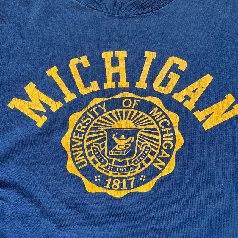 80's Champion チャンピオン カレッジTee UNIVERSITY OF MICHIGAN ミシガン大学 ネイビー イエロー トリコタグ LARGE コットン100% USA製 希少 ヴィンテージ BA-1961 RM2380H