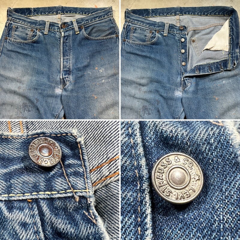 60's LEVI'S リーバイス 501XX デニム ギャラ無し Big E ウォッチポケット裏耳付き 刻印J Vステッチ ペンキ飛び W34 USA製 レングス短め 希少 ヴィンテージ BA-1974 RM2393H
