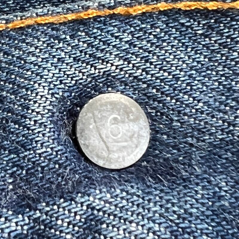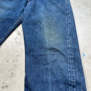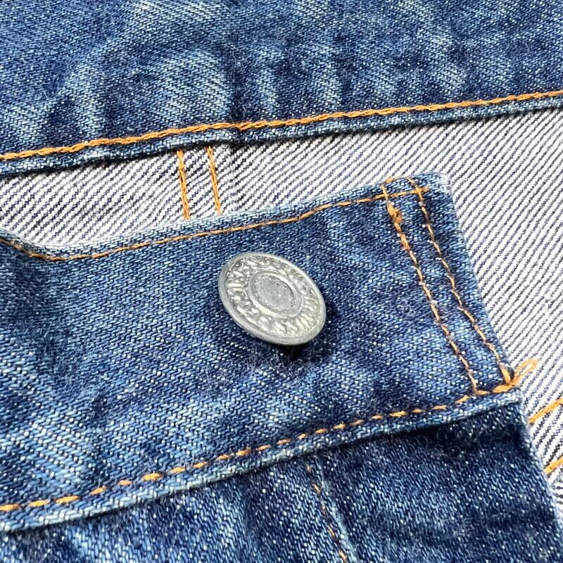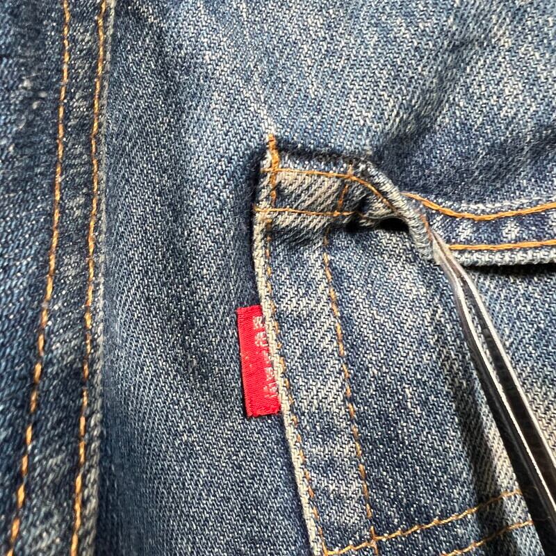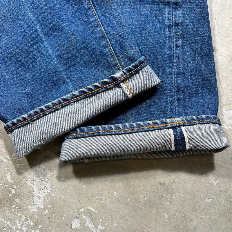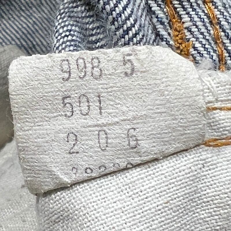 80年代初頭のLevi's501 デニムパンツです。トップボタン裏刻印6、ウォッチポケット裏チェーン、赤耳セルヴィッジ、縮率8%、赤タブスモールe、バックポケット裏チェーン、1980年製。比較的色が残る個体で、5~6割の色味です。ヒゲやハチノスは入っていませんが、センターの折り跡が見られます。バックポケットにも財布あとの様な色落ちも見られます。アタリや細かな擦れは見られますが、ダメージやリペアの無いグッドコンディションです。これからのエイジングも充分楽しんでいただける個体だと思います。表記はW32でウエスト実寸はW30位です。レングスは恐らくオリジナルかと思われますが、表記のL30からは3インチ程縮んでいます。66後期でも色味が残っている個体はかなり見つかりづらくなっているので、サイズが合う方は是非この機会をお見逃しなく。