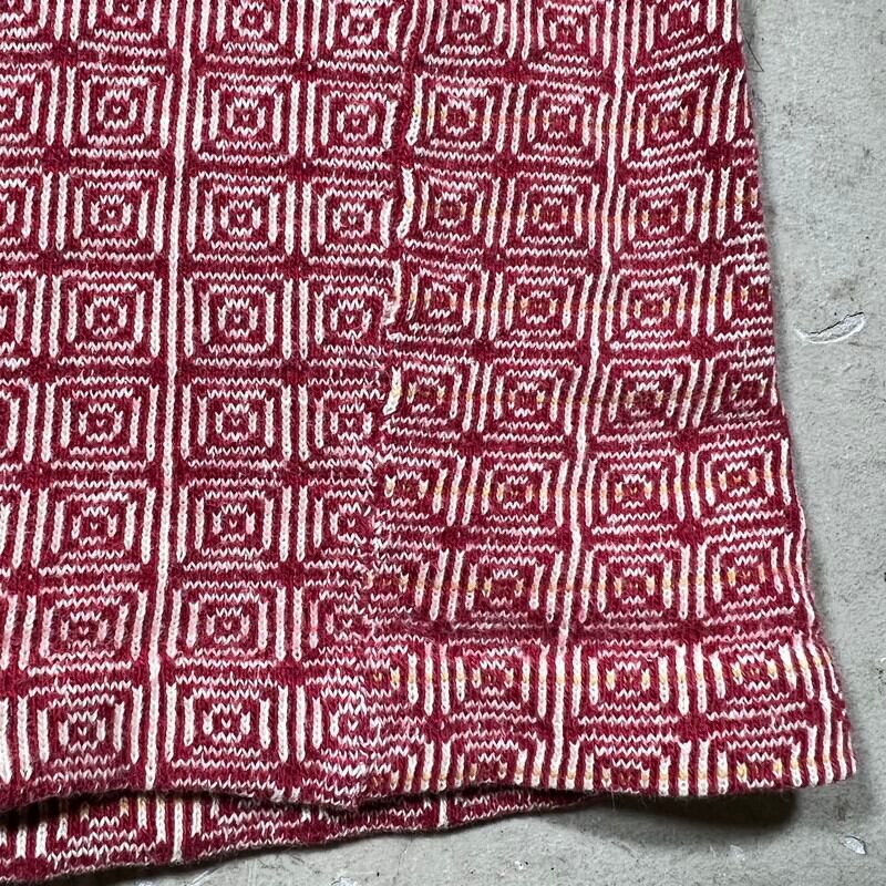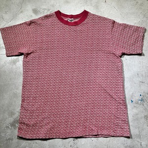 60's Unknown RN13940 ジャガード織 クルーネックTee エンジ 幾何学模様 三升紋 トリム シングルステッチ Mサイズ USA製 希少 ヴィンテージ BA-1990 RM2409H